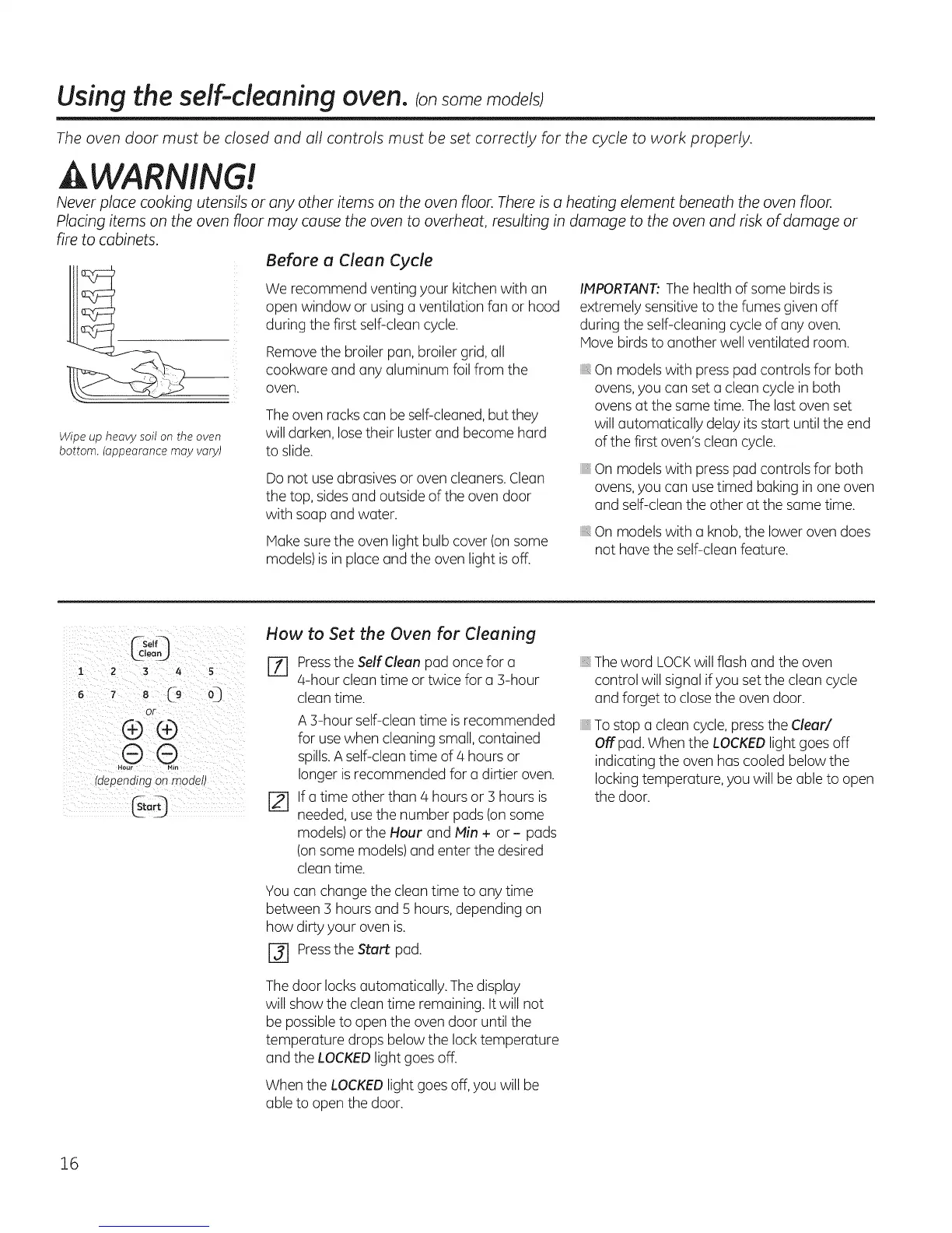 Never place cooking utensils or any other items on the oven floor. There is a heating element beneath the oven floor.