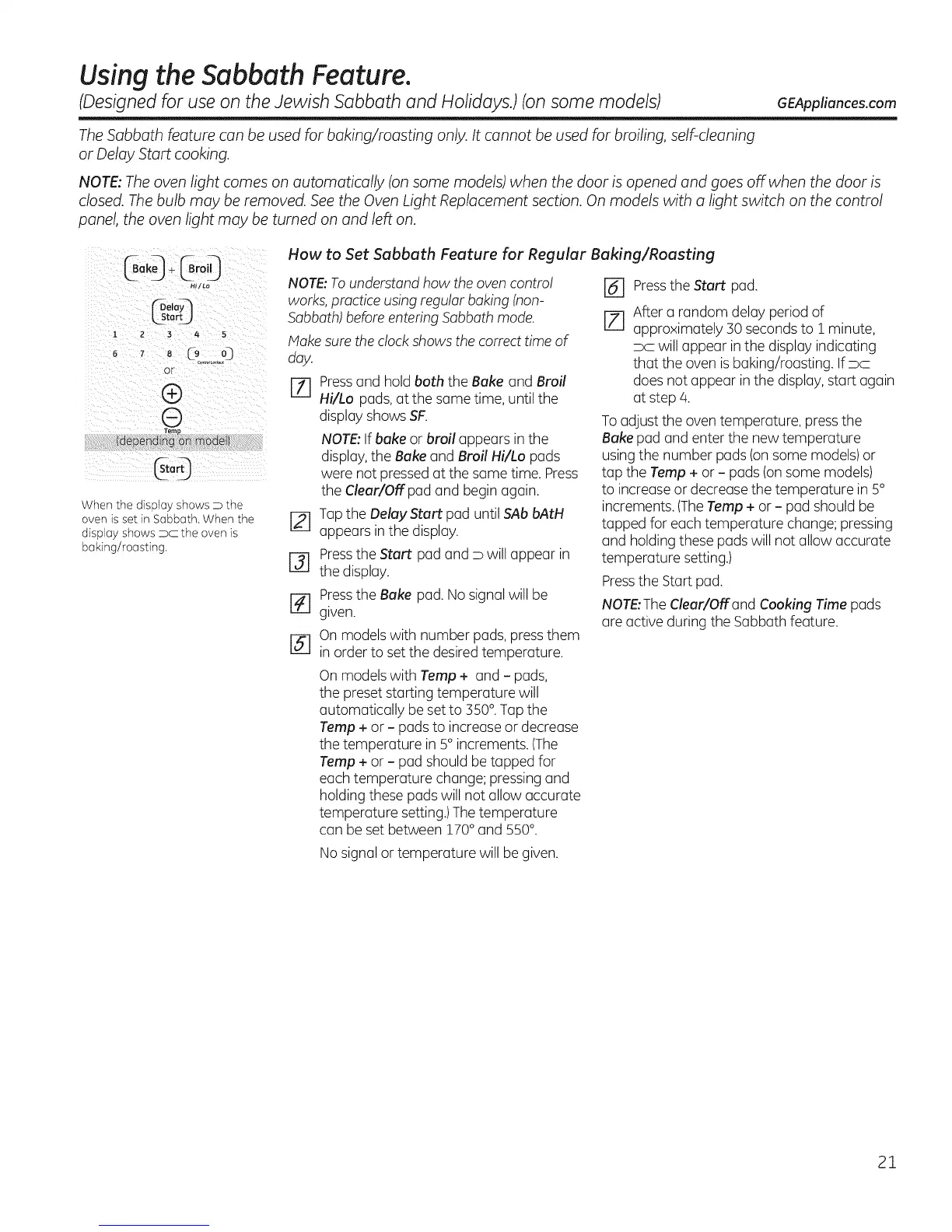 (Designed for use on the Jewish Sabbath and Holidays.) (on some models)