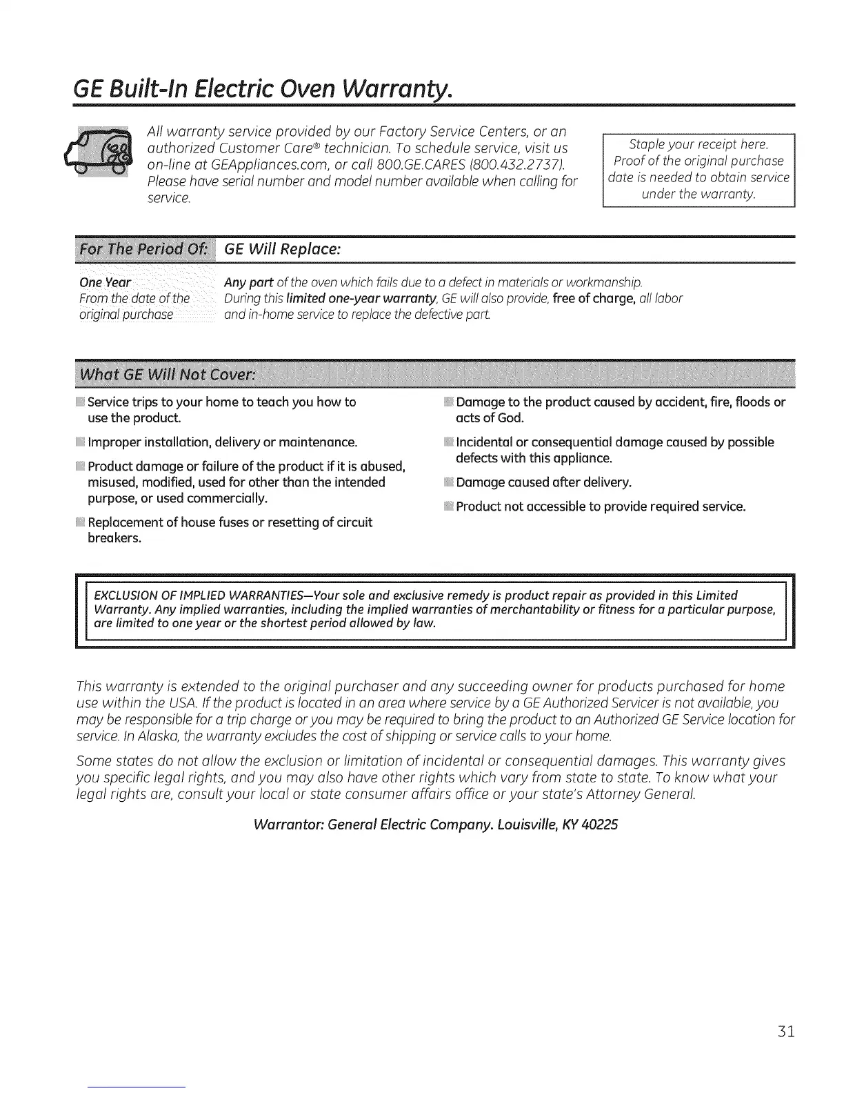 on-line at GEAppliances.com, or call 800.GE.CARES (800.432.2737).