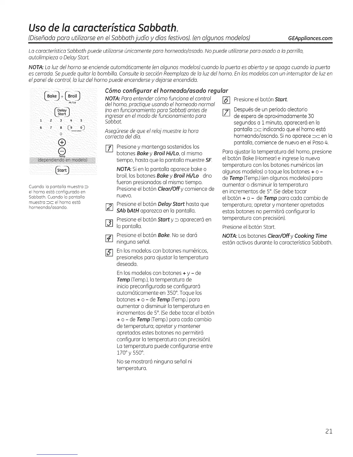 (Disehadapara utilizarseenelSabbathjudio y diasfestivos).(enalgunosmodelos) GEAppliances.com