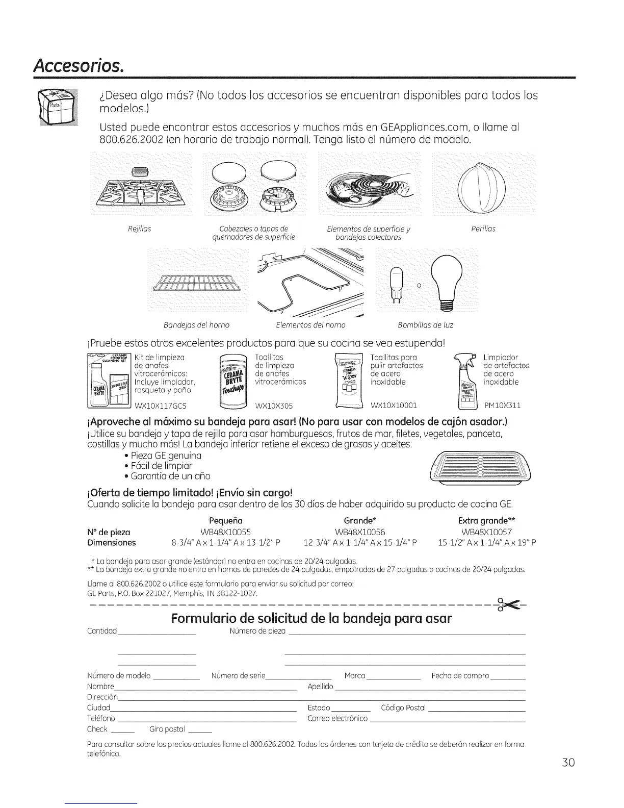 Cuando solicite la bandeja para asar dentro de los 30 d[as de haber adquirido su producto de cocina GE.