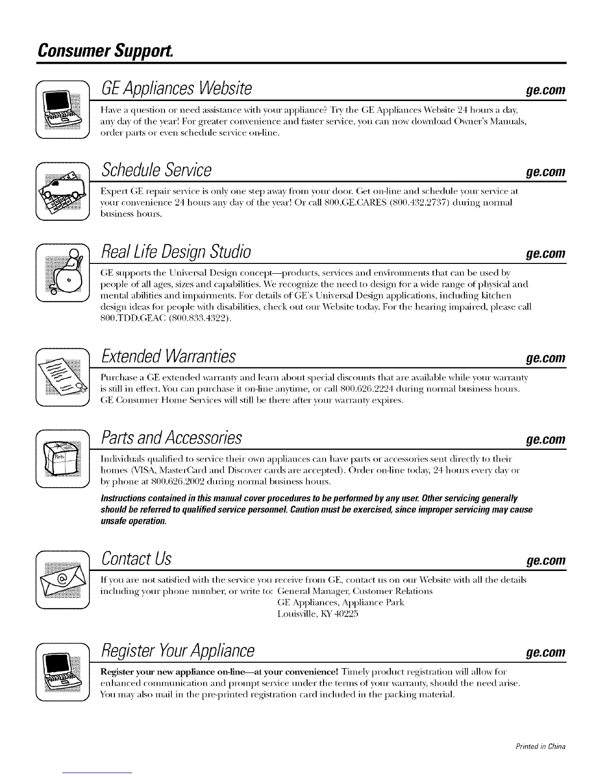 If you are not satistied with the service you receive fl'om GE, contact us on our Website with all the details