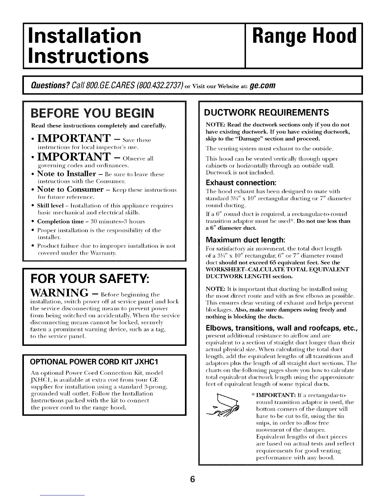 NOTE: Read the ductwork sections only if you do not