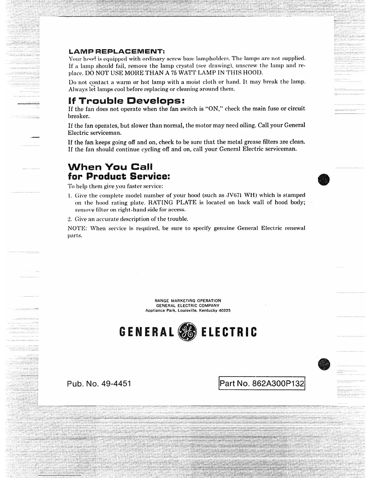 NOTE: fVhen service is required, be sure to specify genuine General Electric renewal