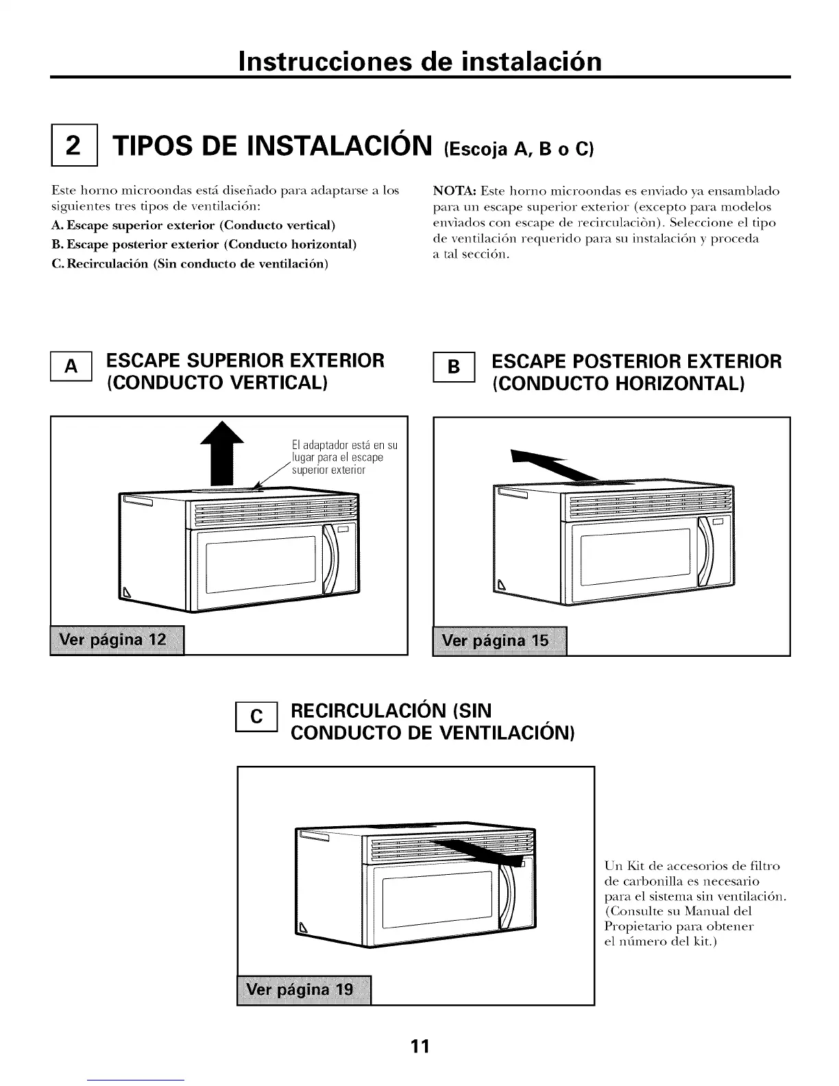 TIPOS DE INSTALACION (Escoja A, B o C)
