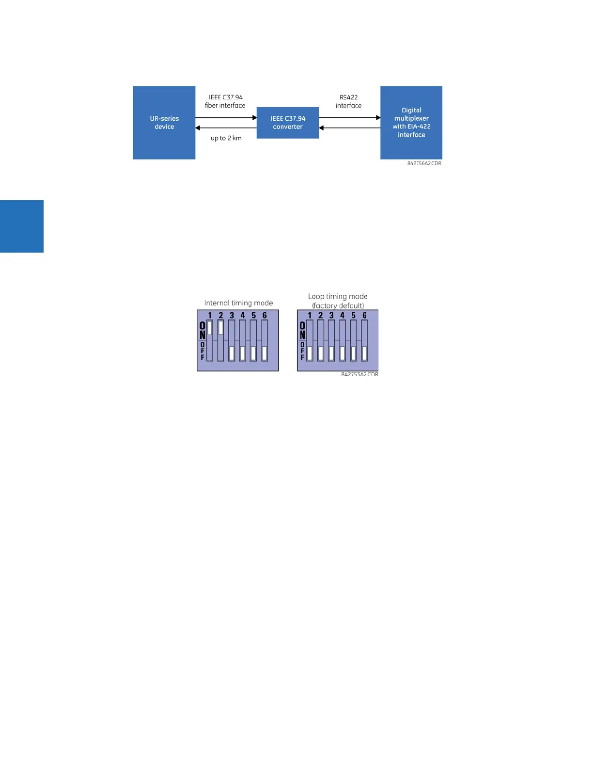 The UR-series C37.94 communication module has six switches to set the clock configuration. The following figure shows