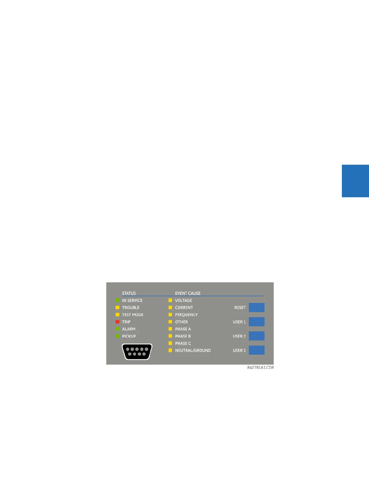 • TROUBLE — Indicates that the relay has detected an internal problem. Check the self-test messages outlined at the