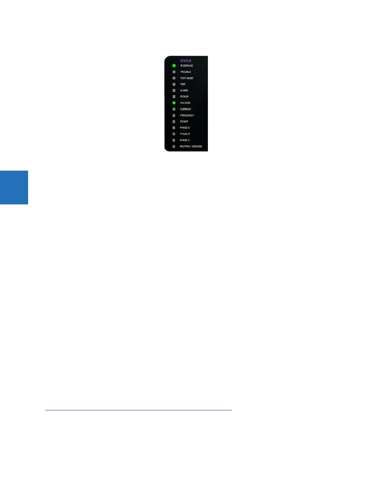 Event-cause LEDs are below the status LEDs. They are turned on or off by protection elements that have their respective