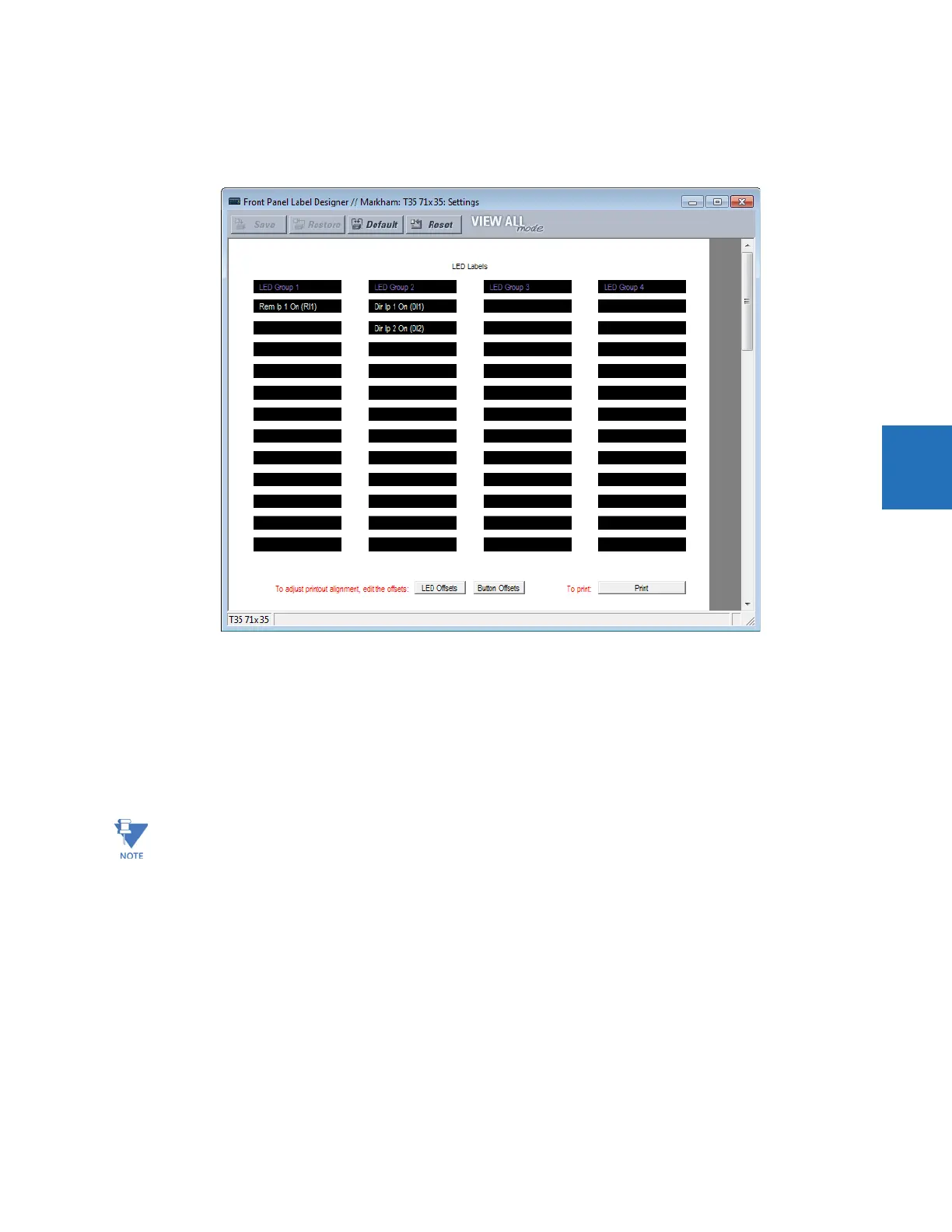 LED Offsets and Button Offsets buttons move all labels left/right and up/down on the page (they both do the same