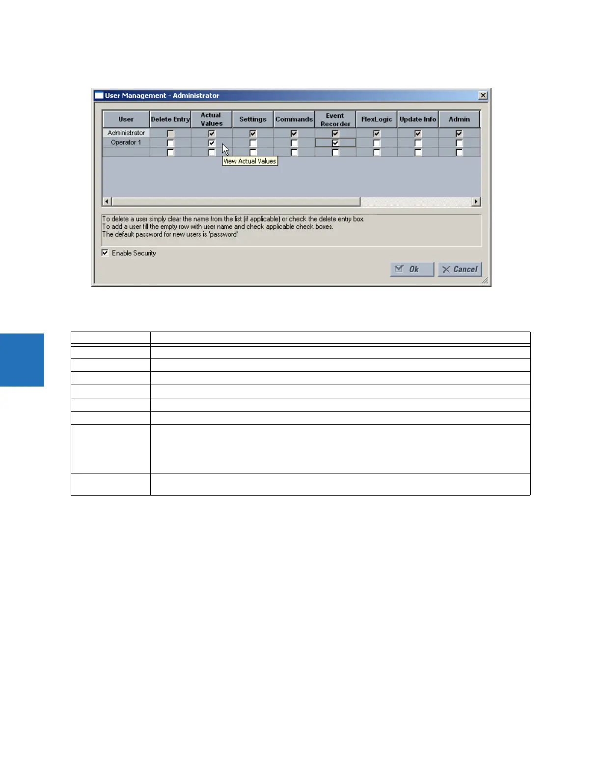 Admin When the check box is enabled, the user becomes an EnerVista UR Setup administrator and has all