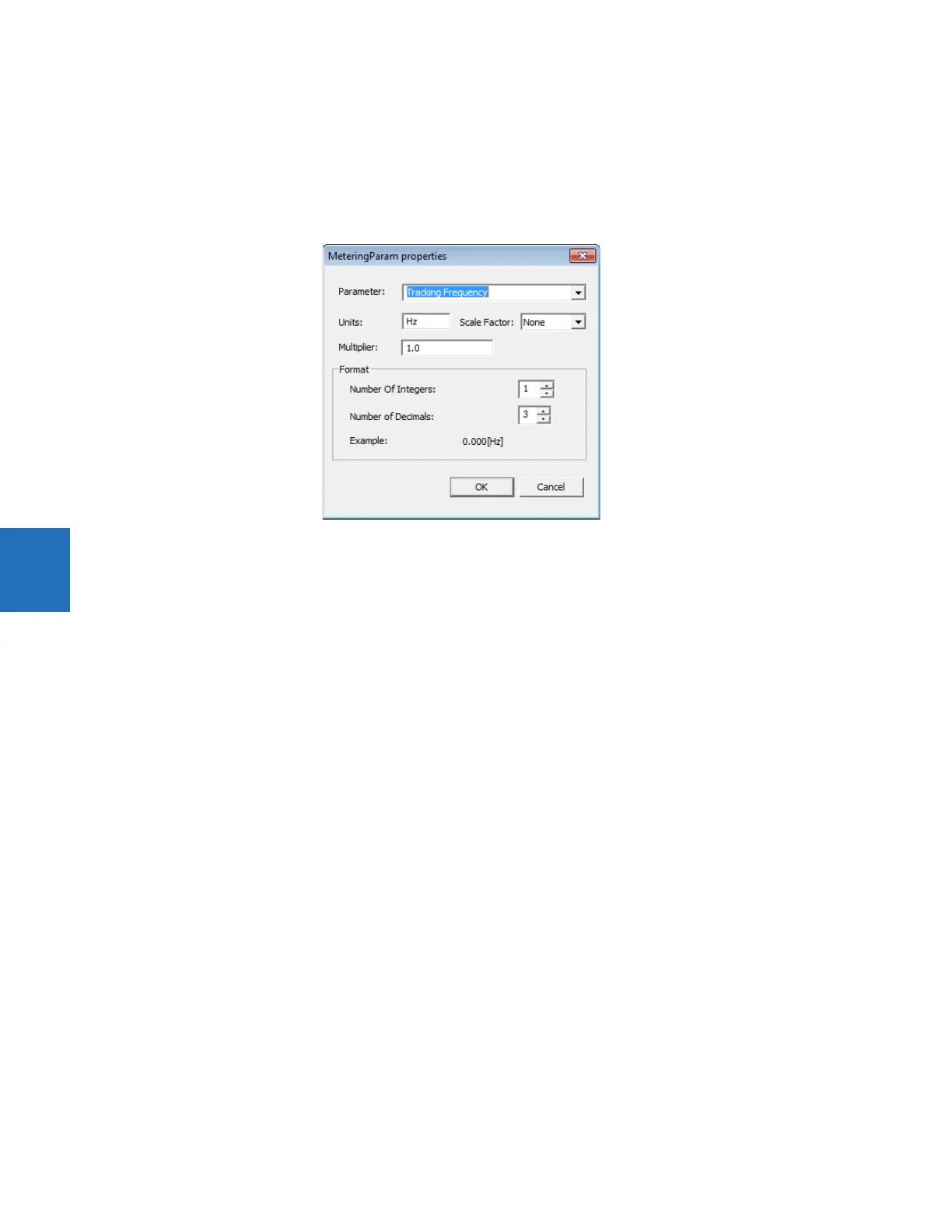 This setting selects a FlexAnalog parameter that specifies the metered value to display in the metering window. A