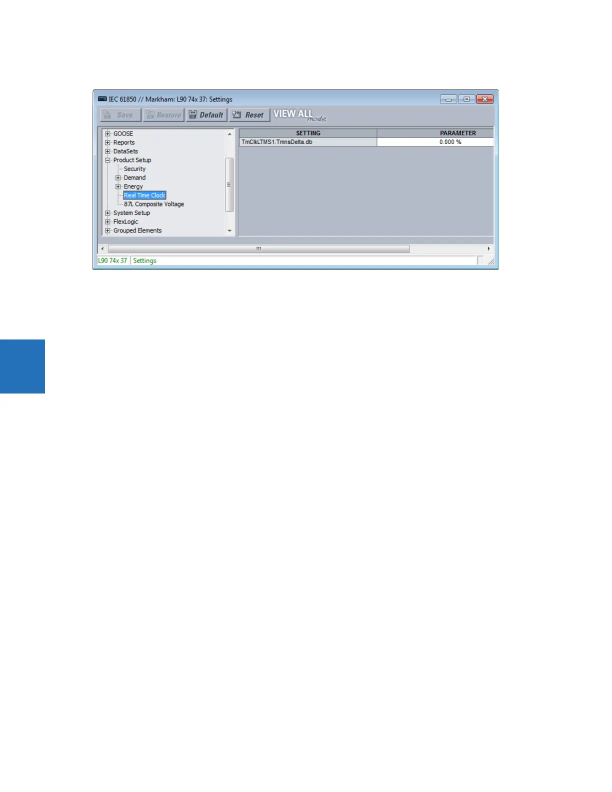 The IEC 61850 panels contain hundreds of deadband settings, such as in the following panels: Product Setup > Real Time