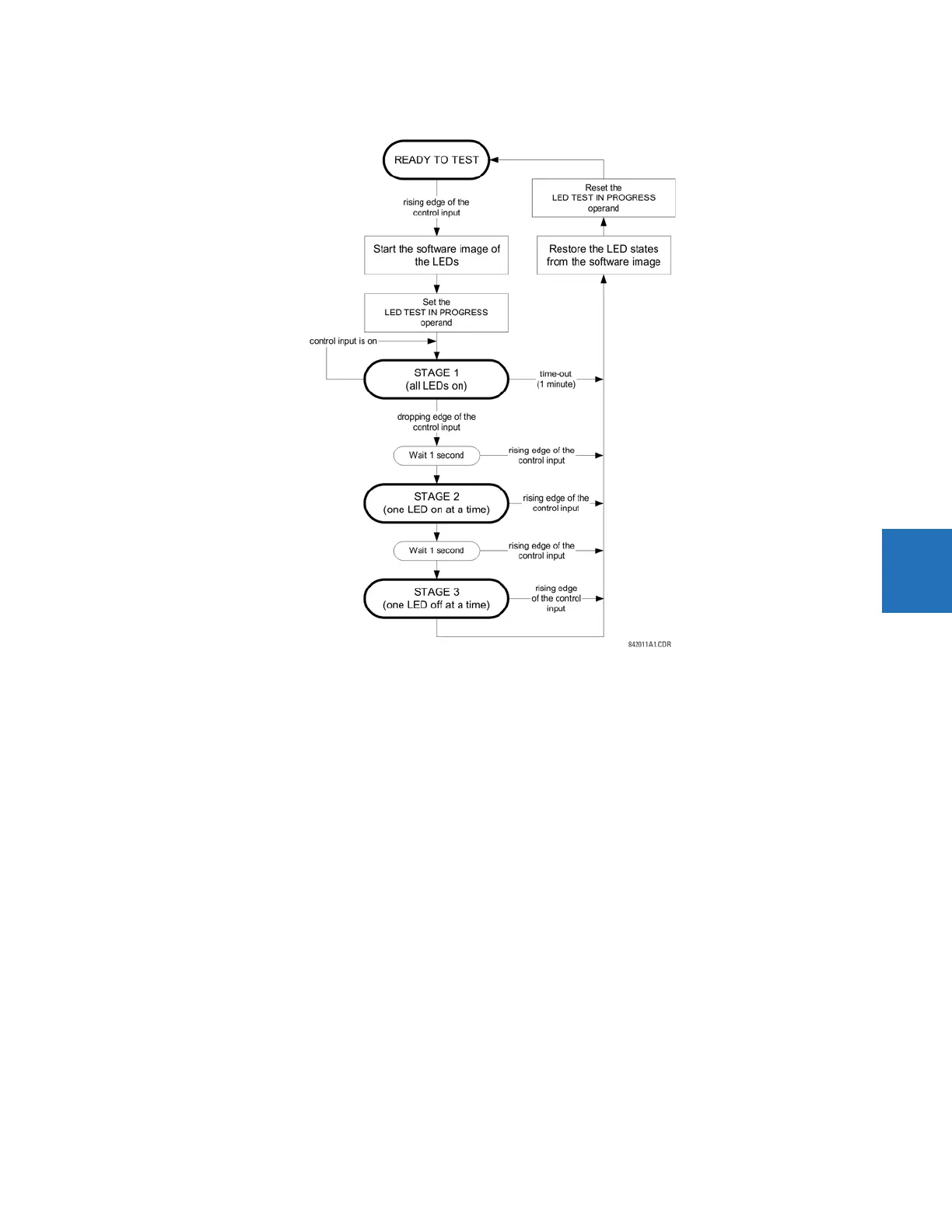 The test is initiated when the user-programmable pushbutton 1 is pressed. Keep the pushbutton pressed for as long as the