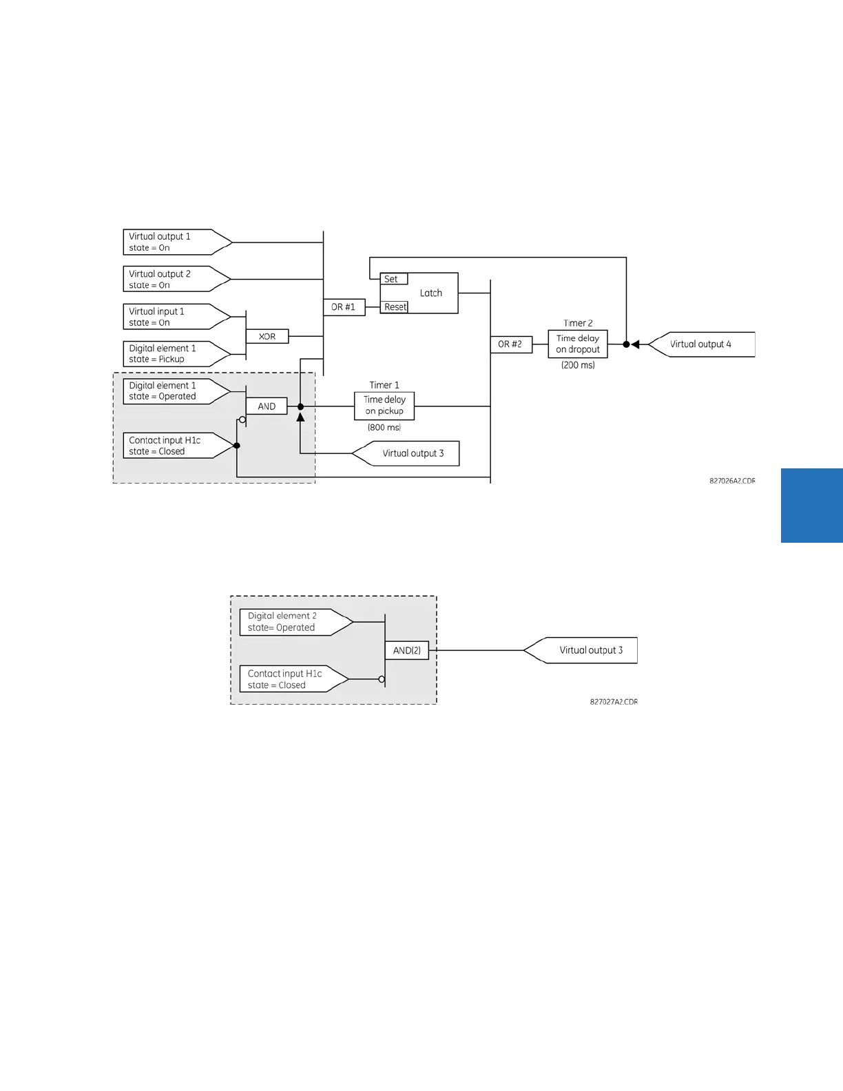 Therefore, the required logic can be implemented with two FlexLogic equations with outputs of virtual output 3 and