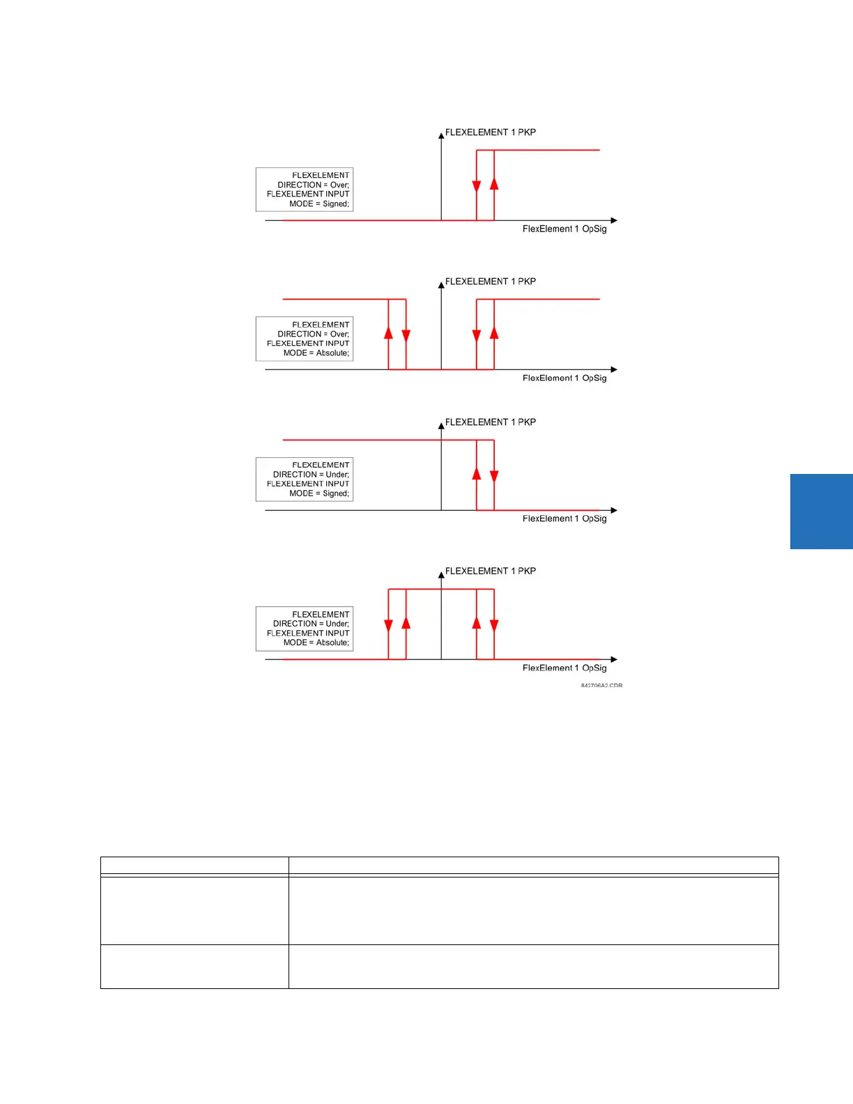 FLEXELEMENT 1 PICKUP value. If set to “Under,” the