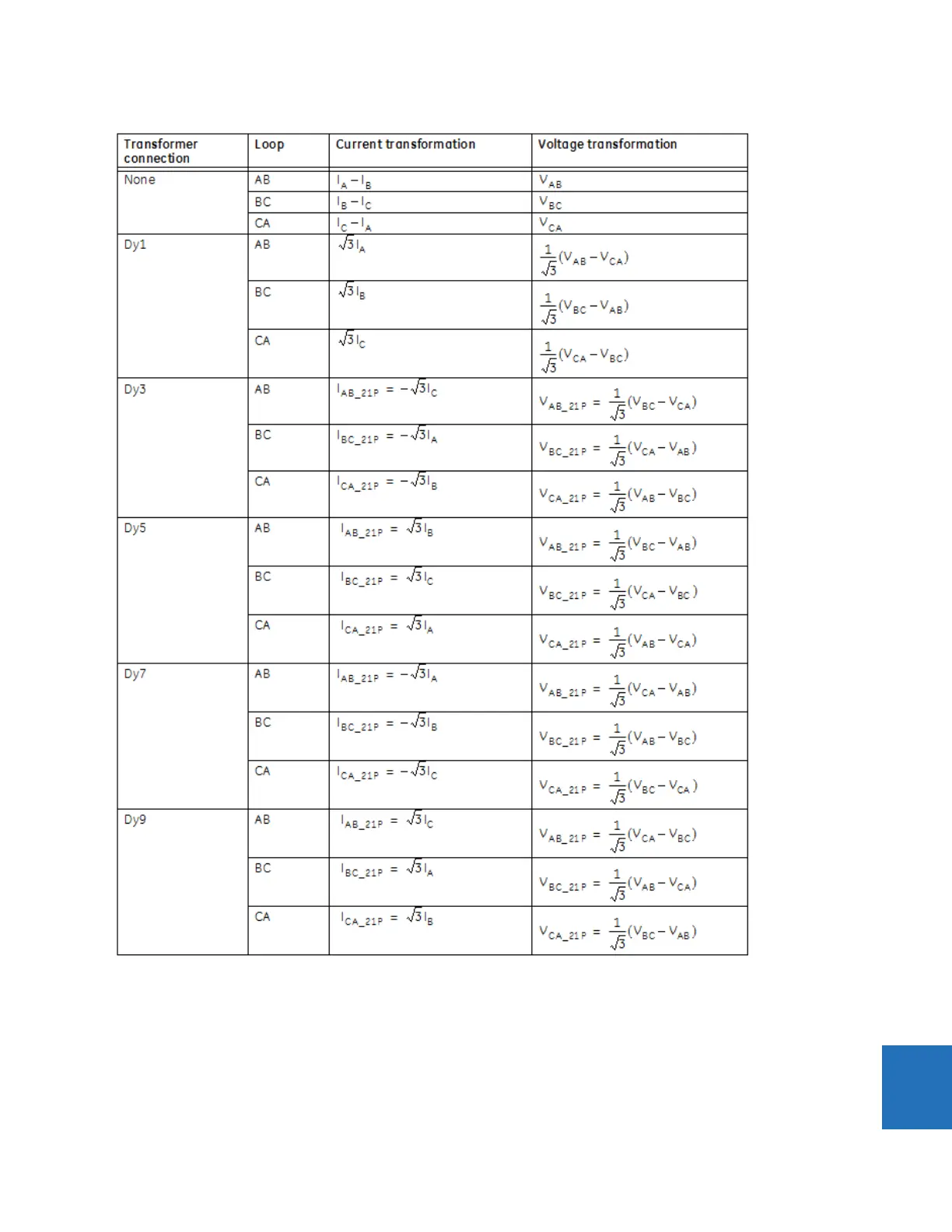 Table 10-9: Phase distance input signals for delta-wye transformers