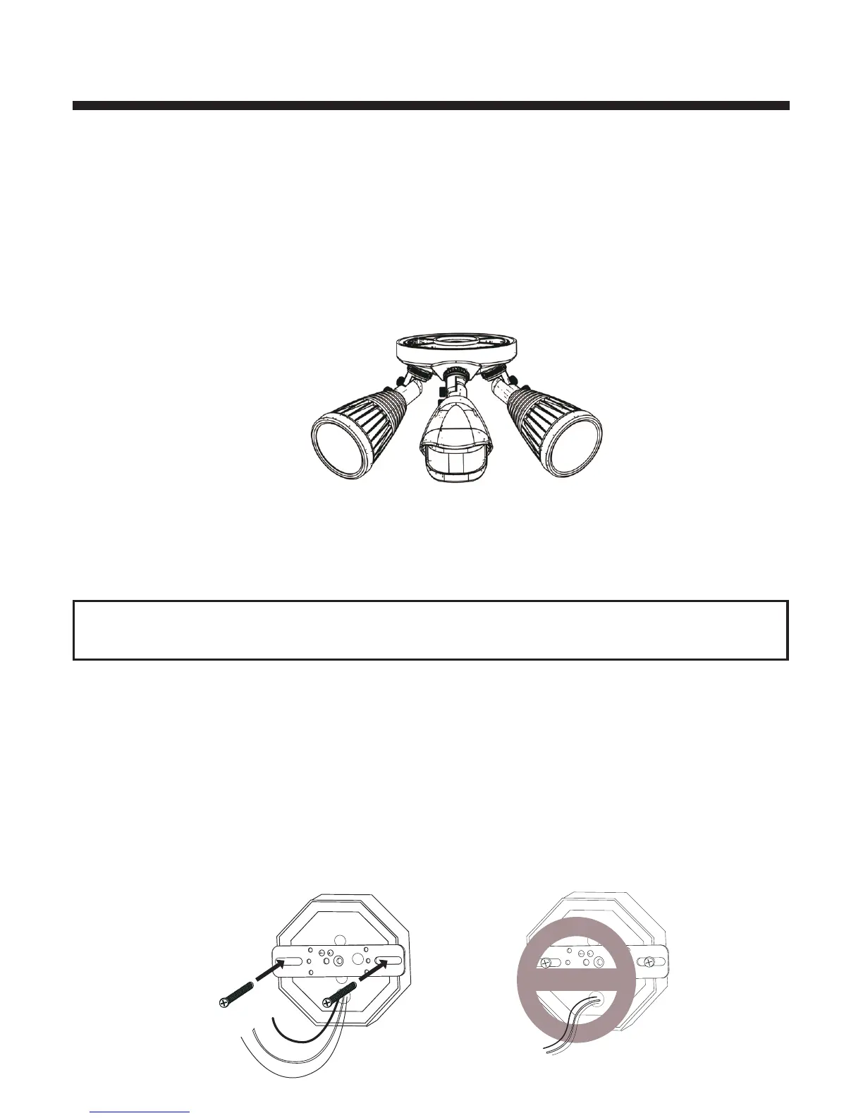 2. Install mounting plate to junction box as shown using two mounting