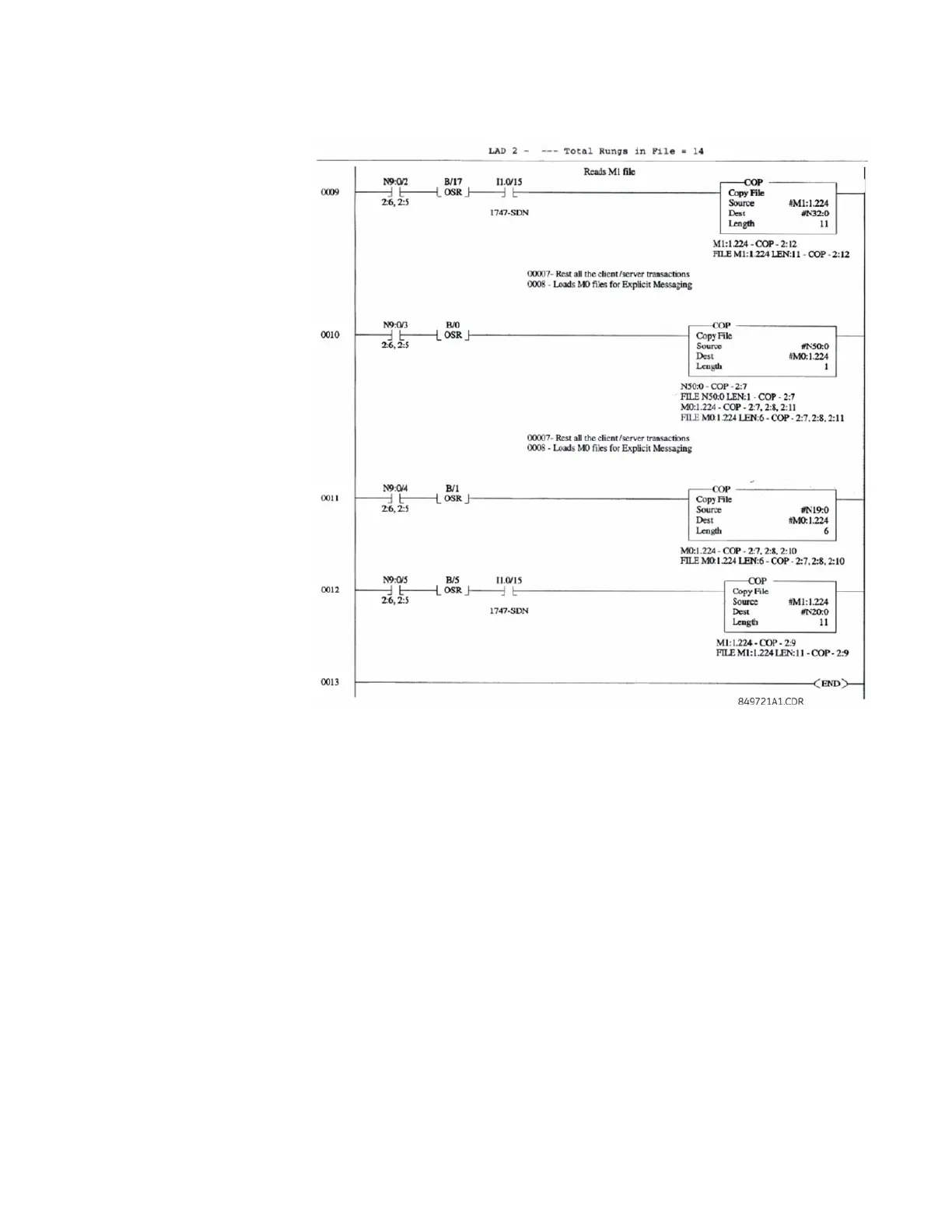 FIGURE A–11: Ladder Logic, Rungs 0009 to 0013