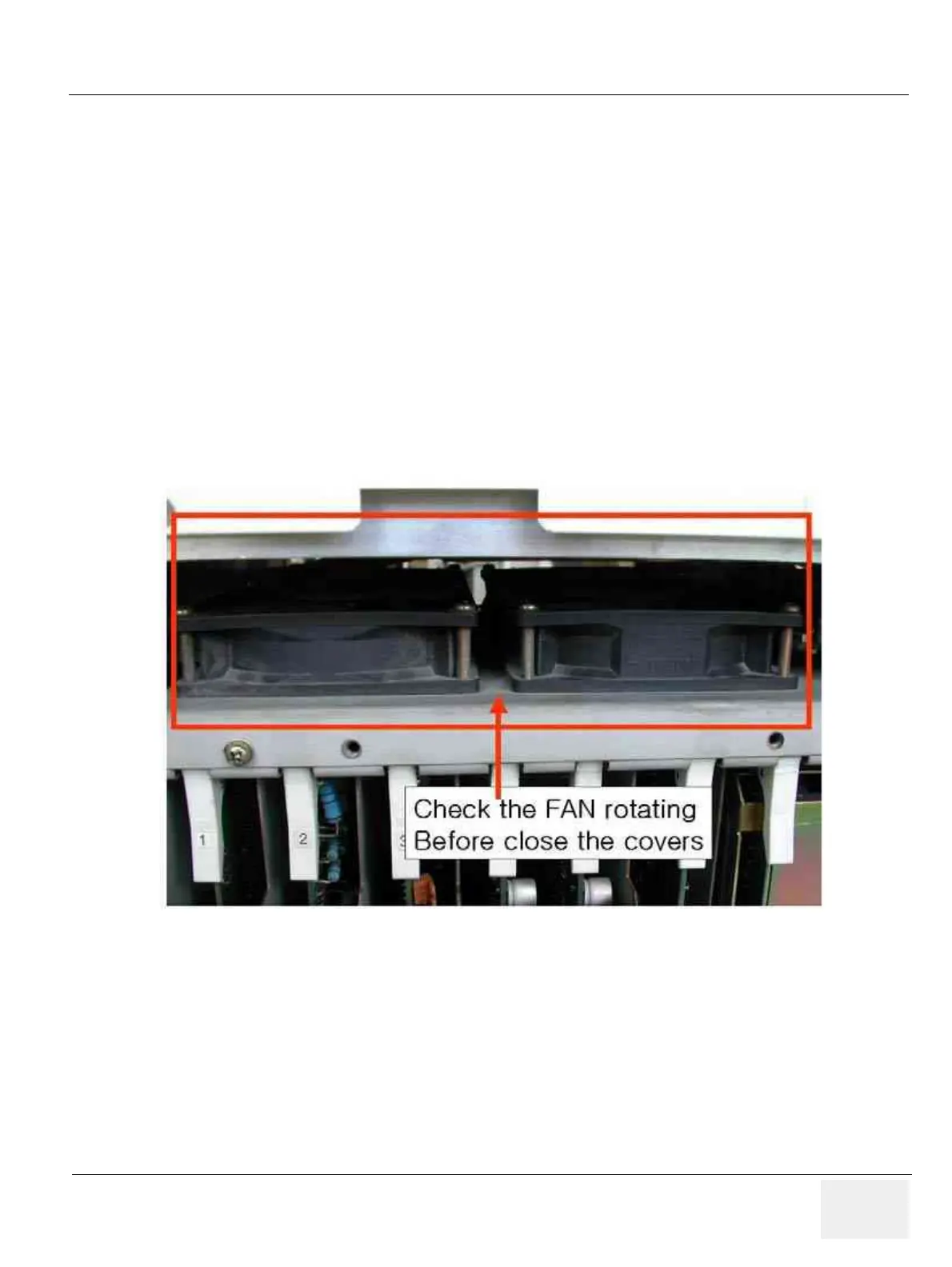 2.) Check the FAN rotating with naked eye and check the FAN operating by rotating sound. No strange