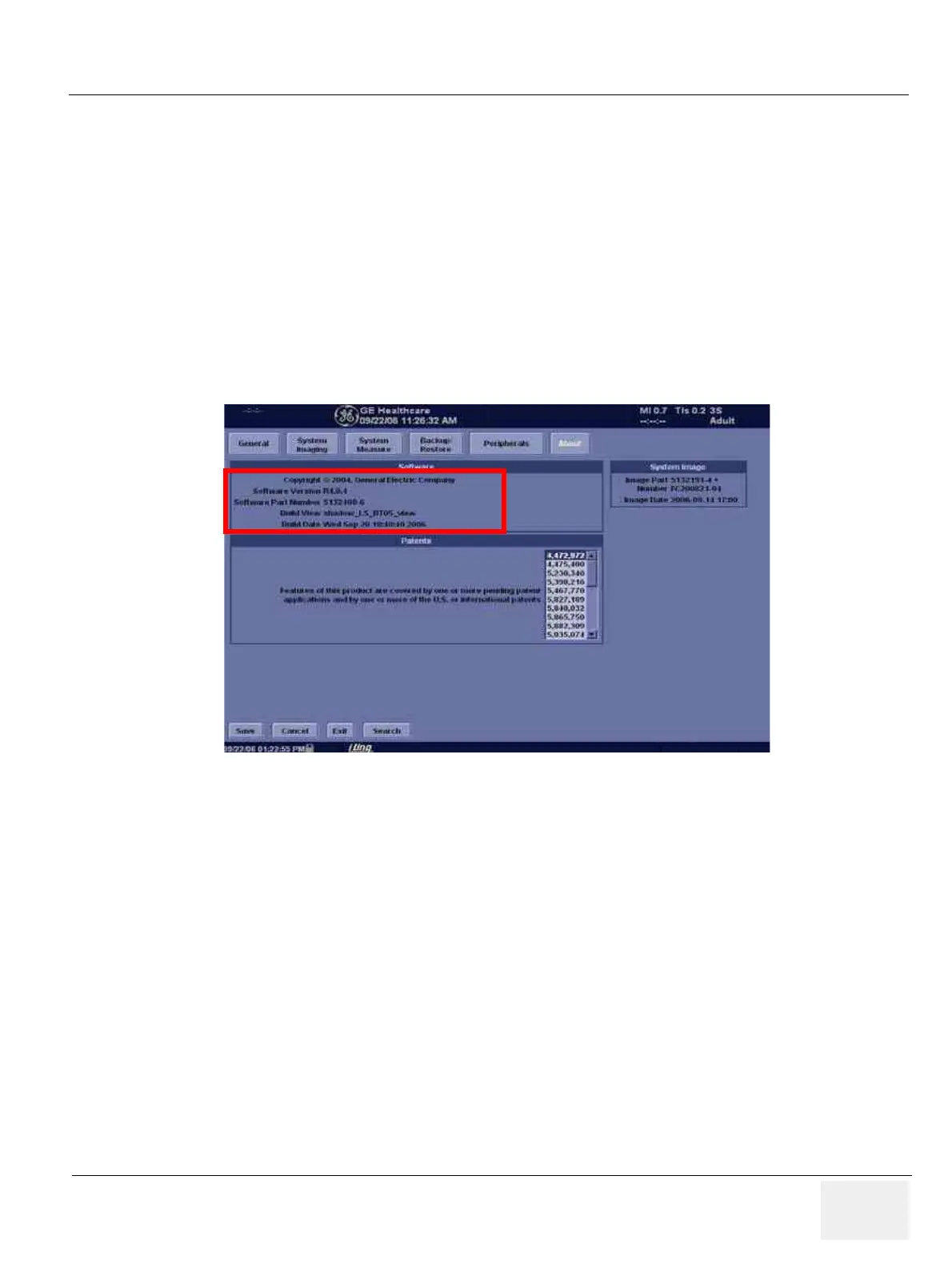 2.) Click on About tab. The software version will be shown on the monitor as shown. Confirm the