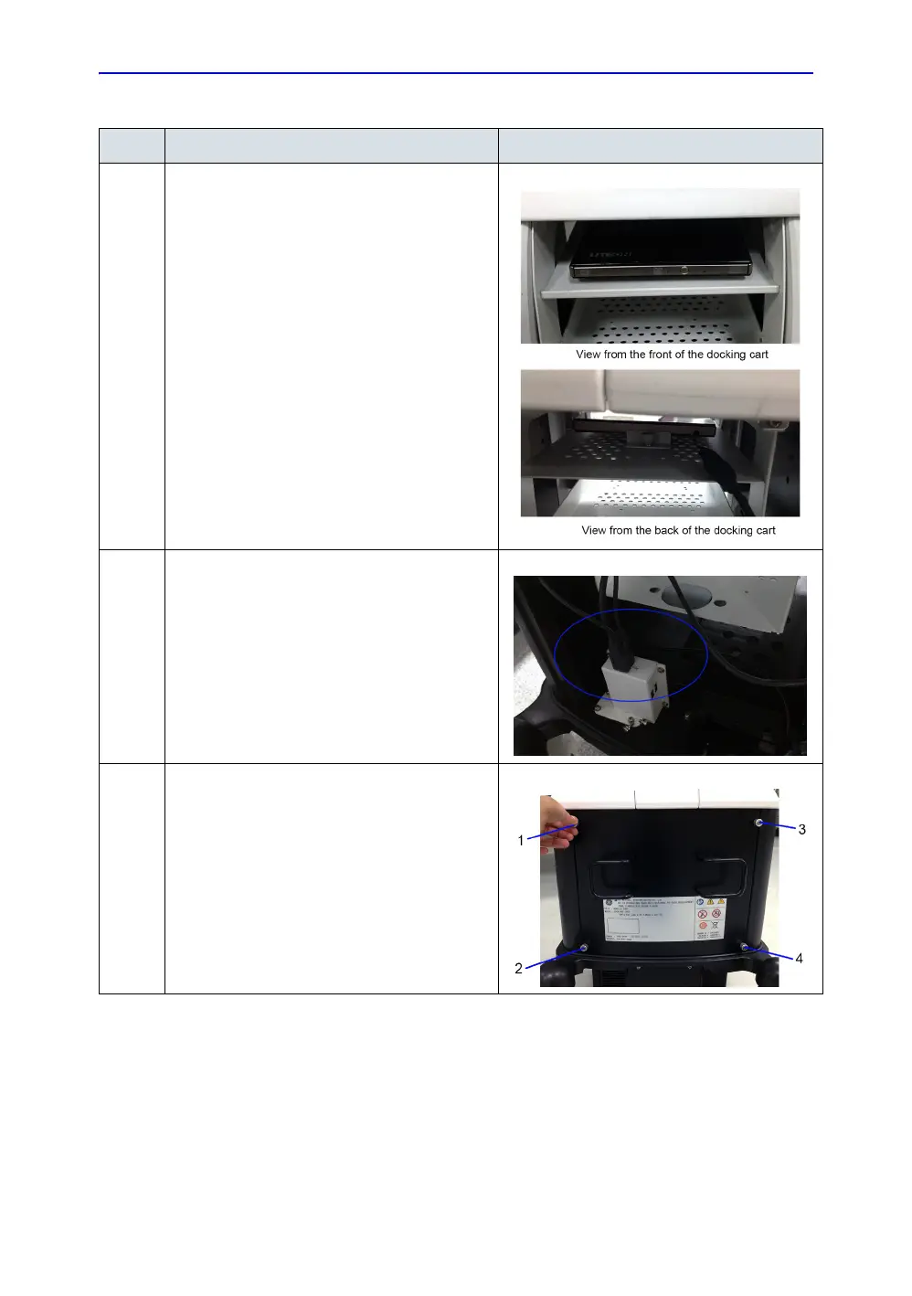 5. Mount the rear panel to the docking cart and