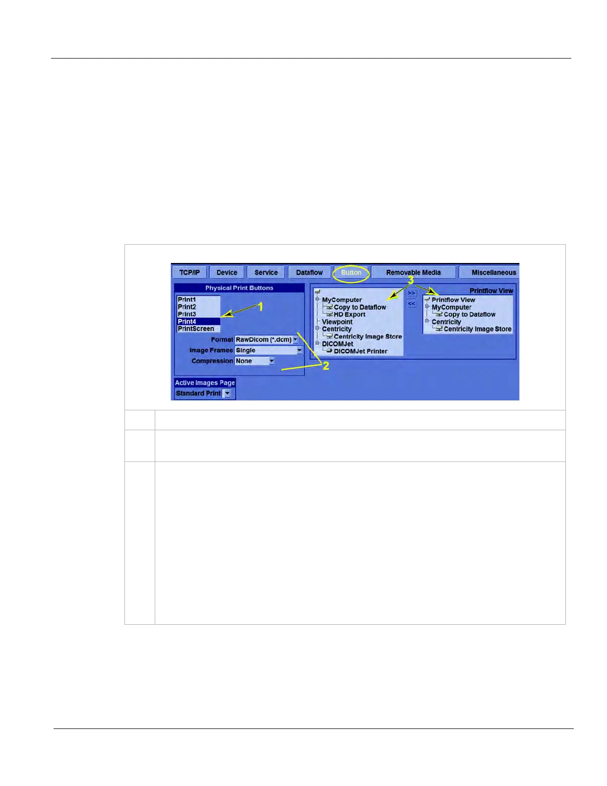 Set Format, Image Frames, and Compression as desired. See: Table 3-14 "Print Button