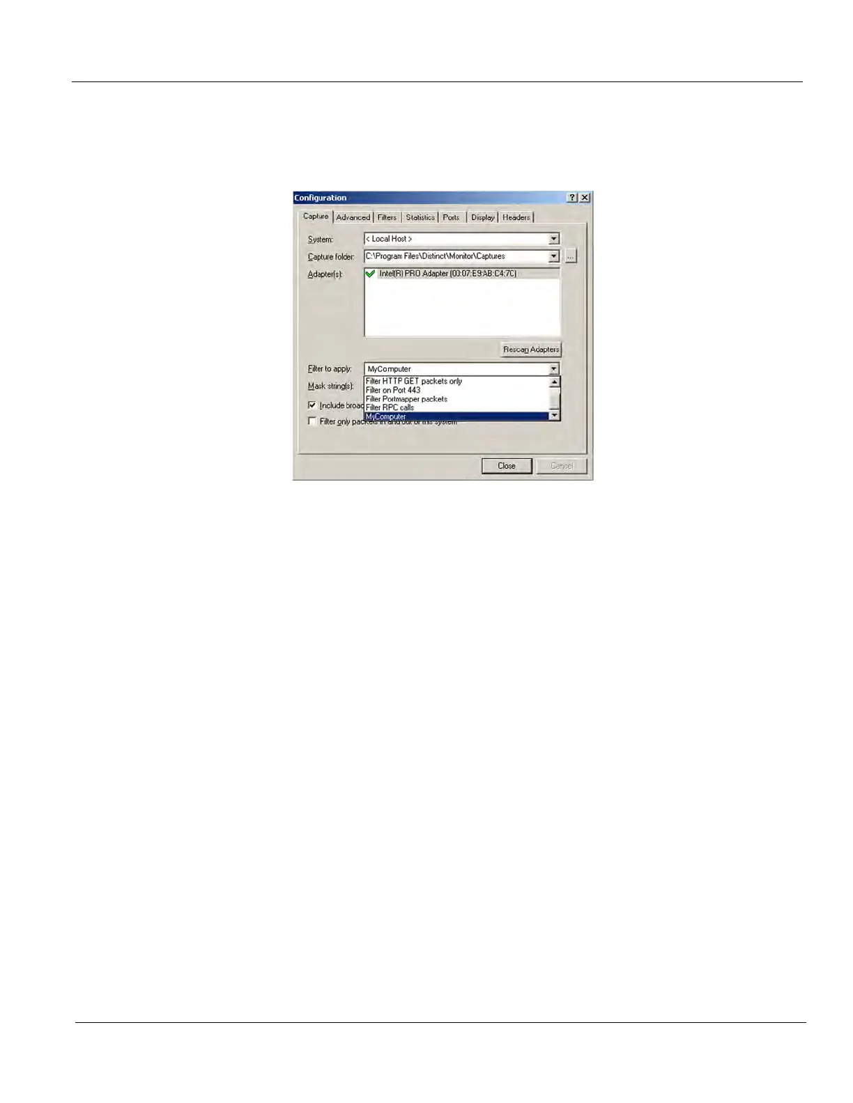 Figure 7-8 Capture Tab on Configuration Screen