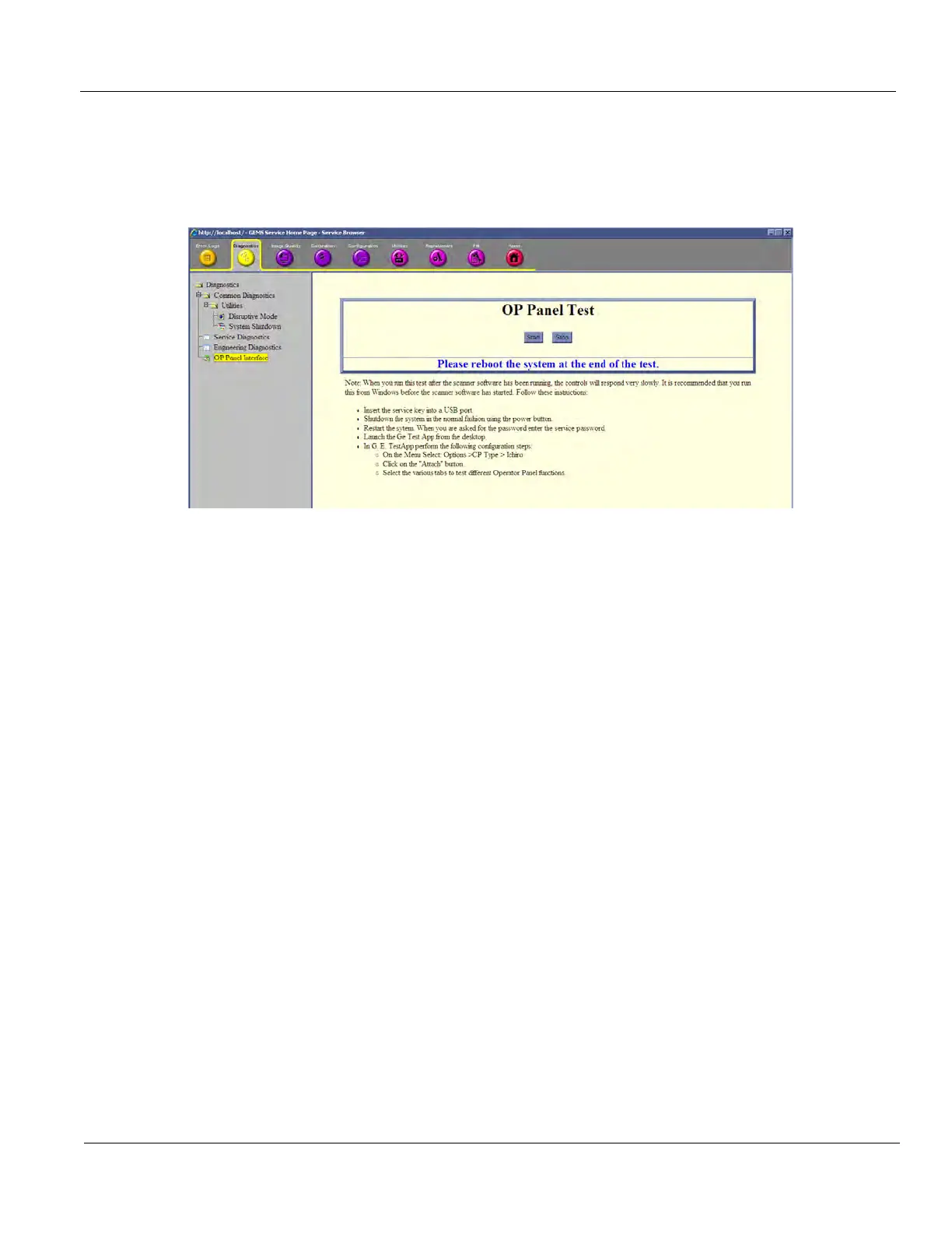 The Operator Panel functionality can be tested using a program (GE Test App) available through the