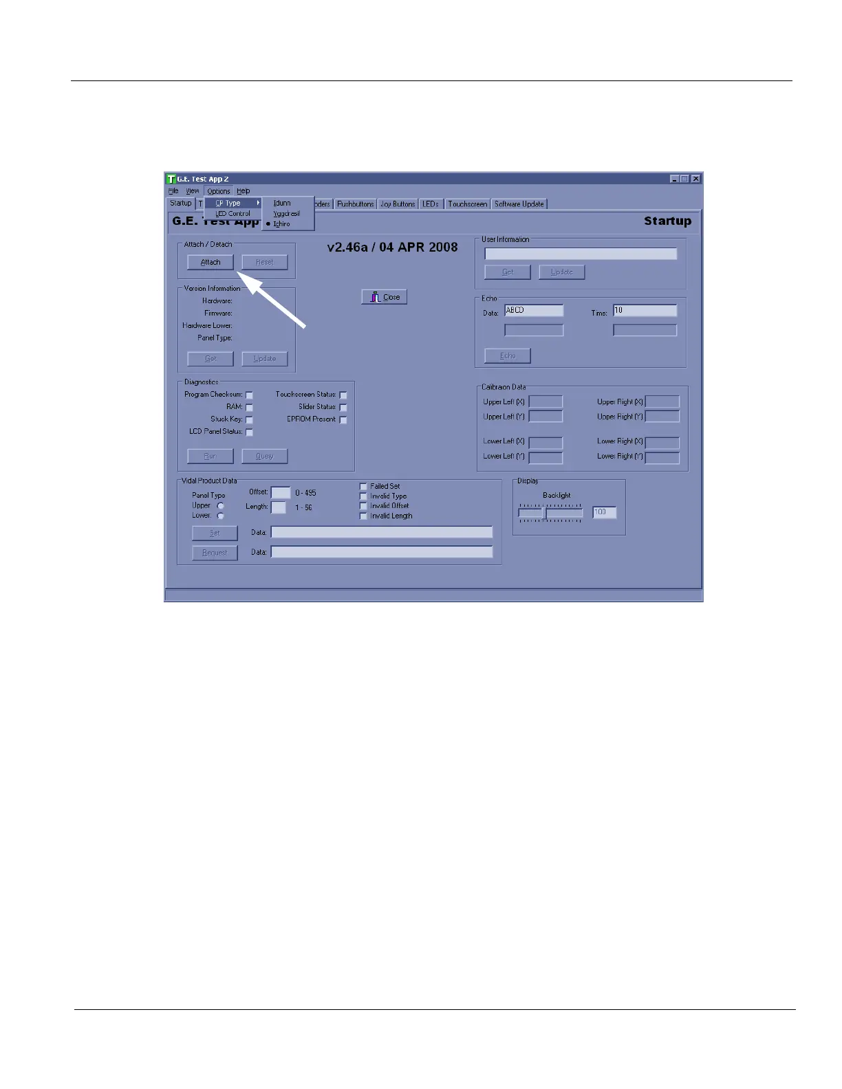 Figure 7-30 Attach and GE Test App Startup Tab - Attach Button Active - R4 and earlier