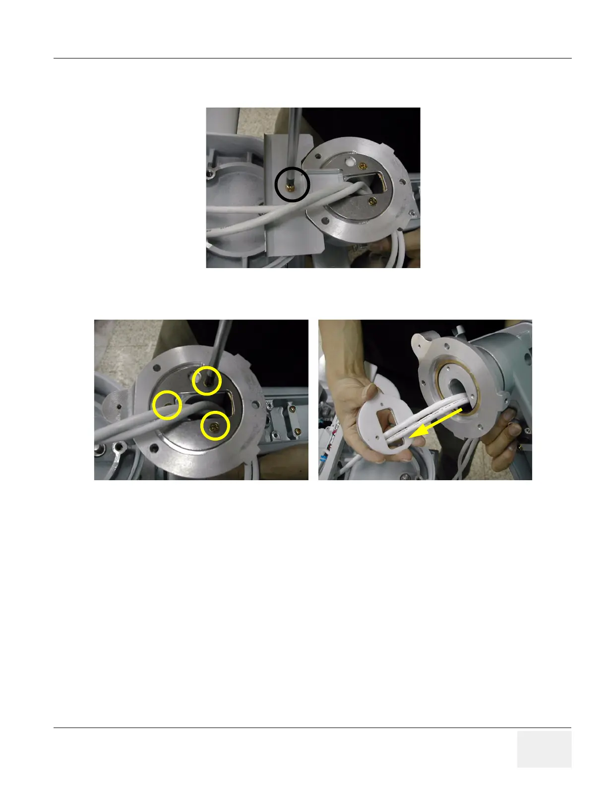 18.) Unscrew 3 screws (2373562, FH M4x10 YEL) to separate the Flexible arm stopper (A+B).