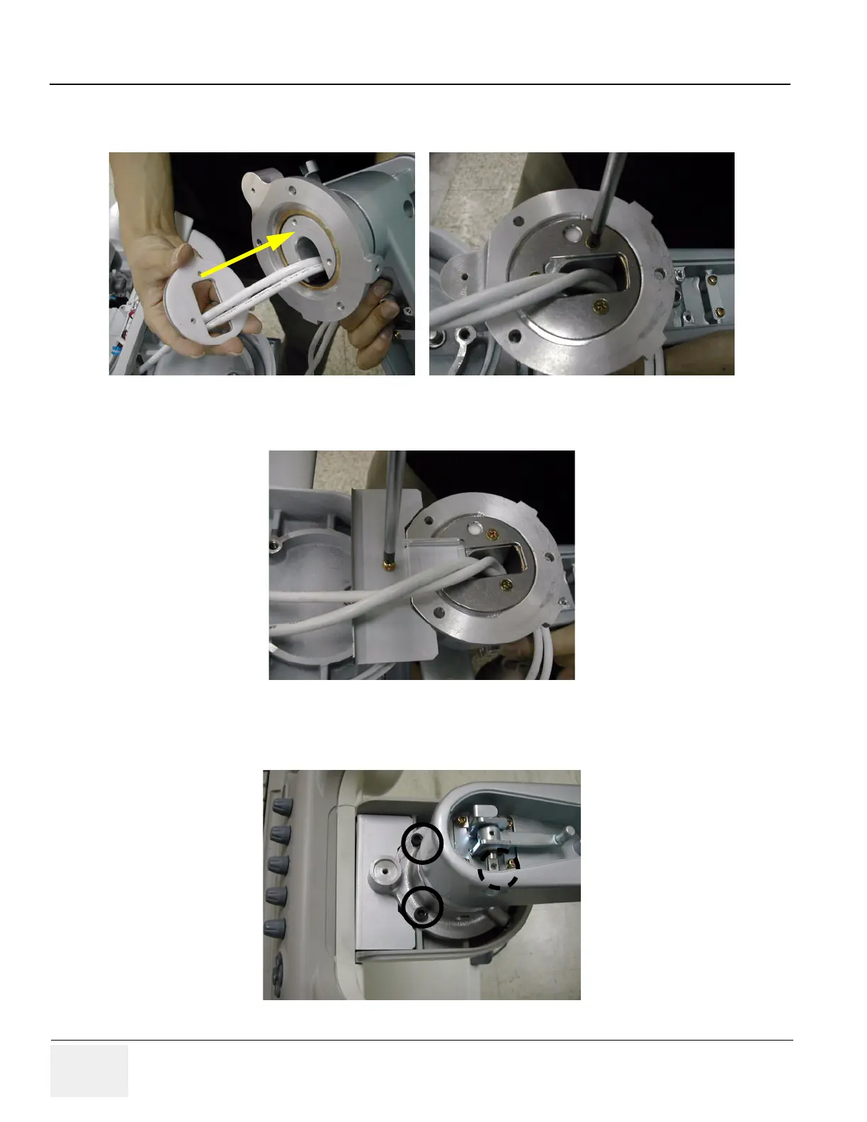 6.) Screw 3 screws (2373562, FH M4X10 YEL) to fix the flexible arm stopper after adjusting the holes.