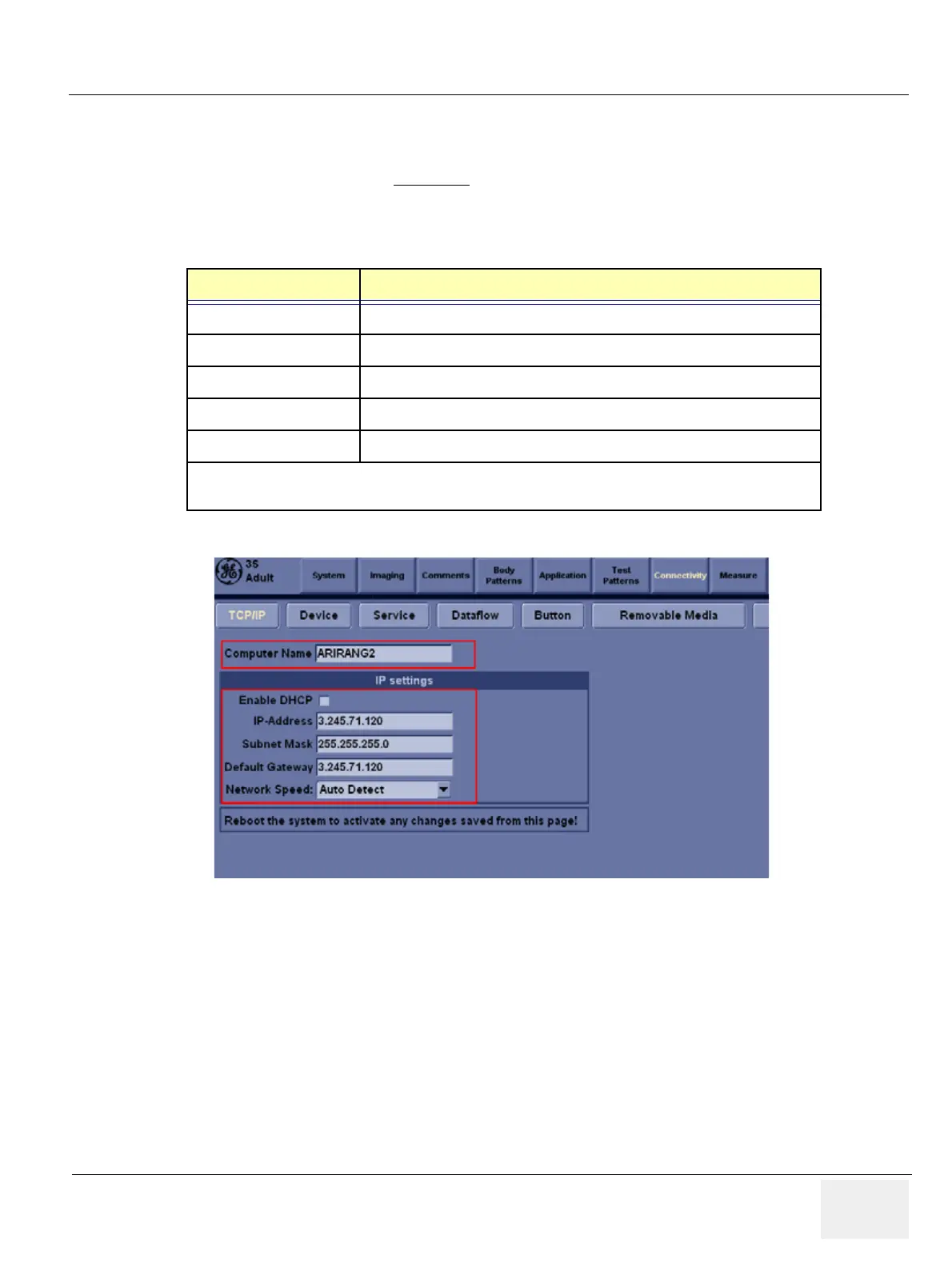 Note : For a stand-alone system, preset values of IP address, subnet mask, and default gateway, shown