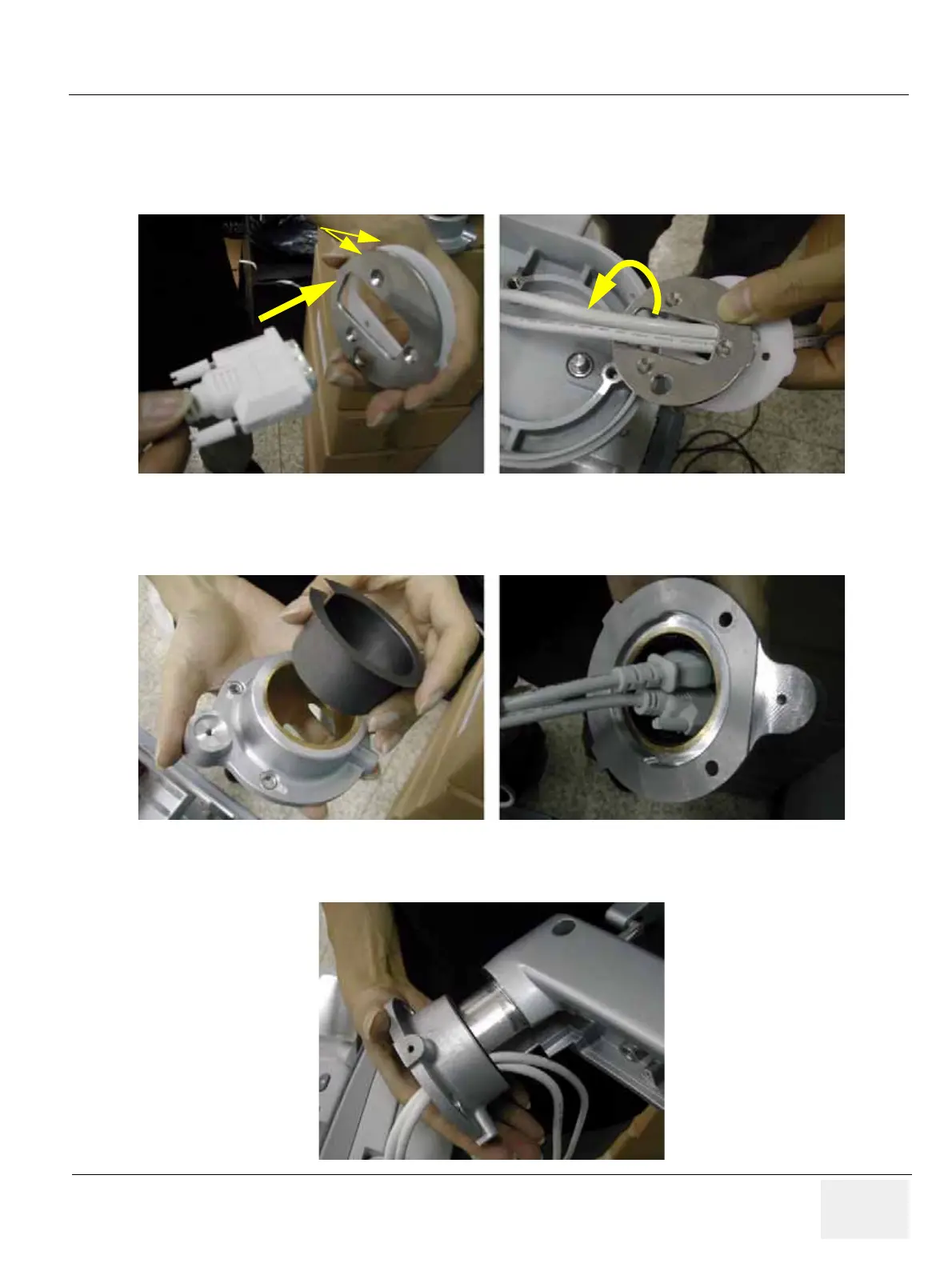 2.) Insert oilless bush into the flexible arm neck pipe and insert two cables into the flexible arm neck
