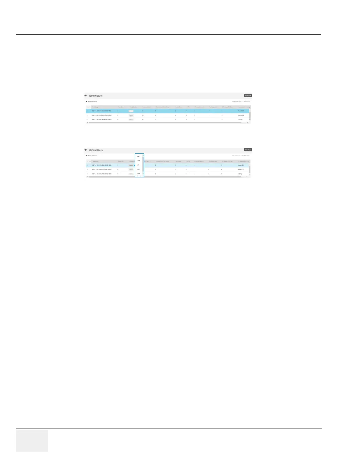To access this page, under System Status, select Bootup Issues.
