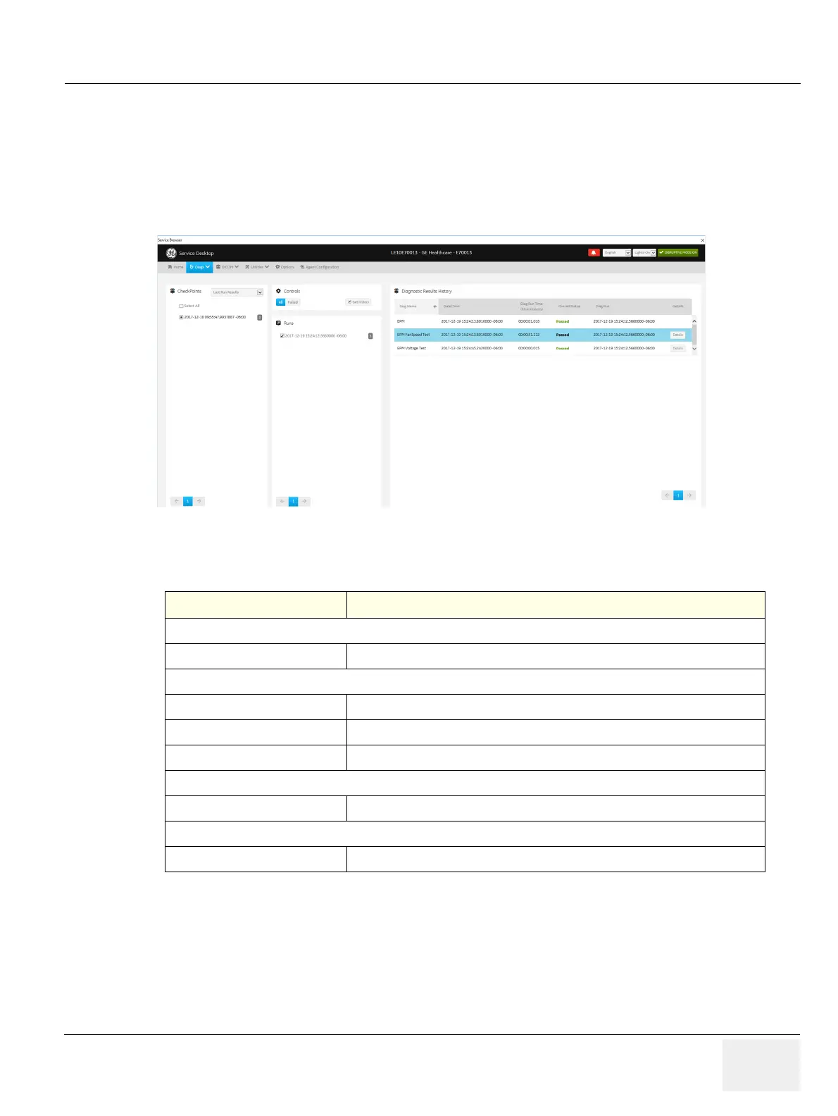 Get History Select to display a history of the run diagnostics.