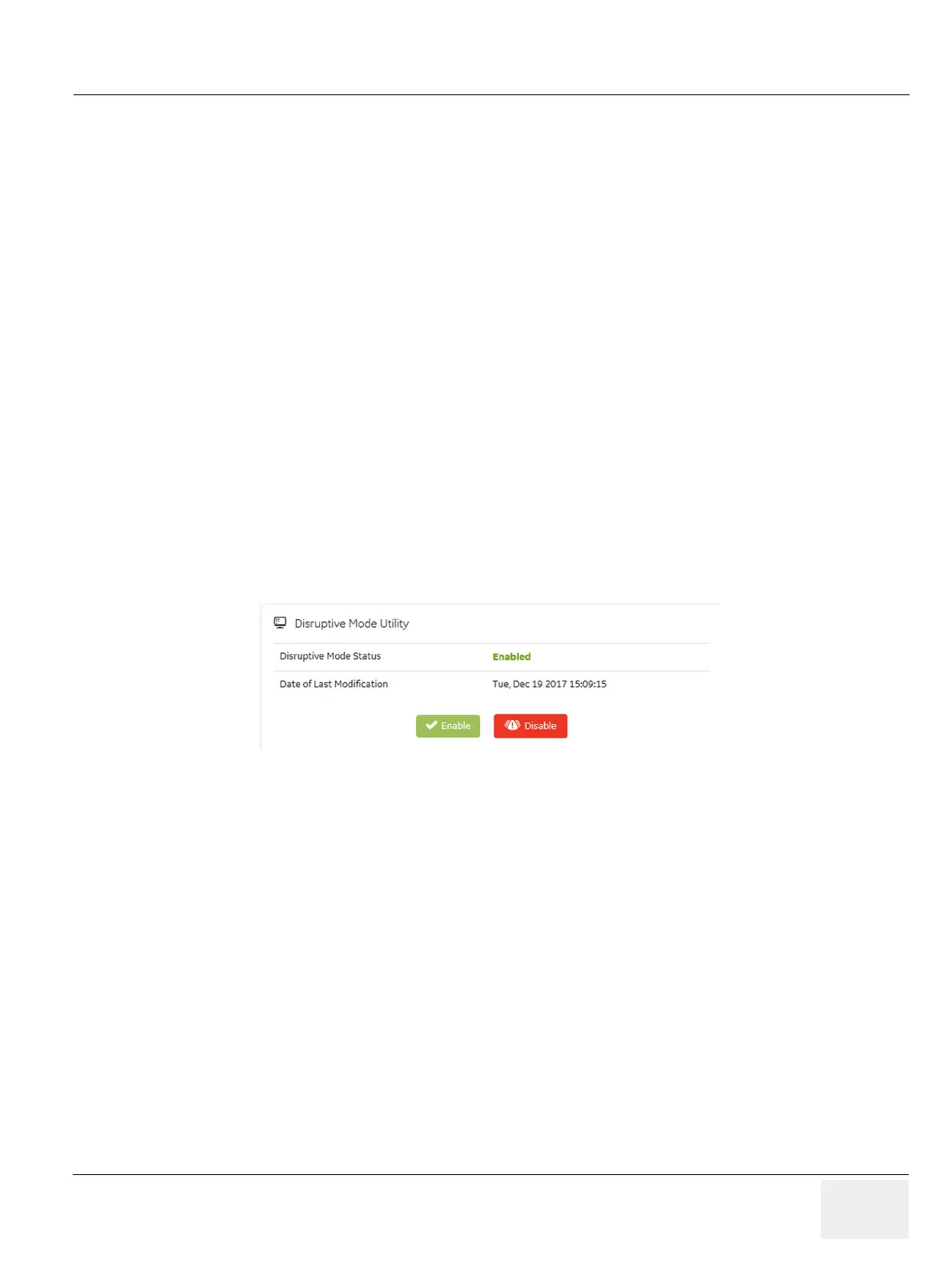 Disruptive Mode provides a way to enable and disable Disruptive mode. When enabled, Disruptive