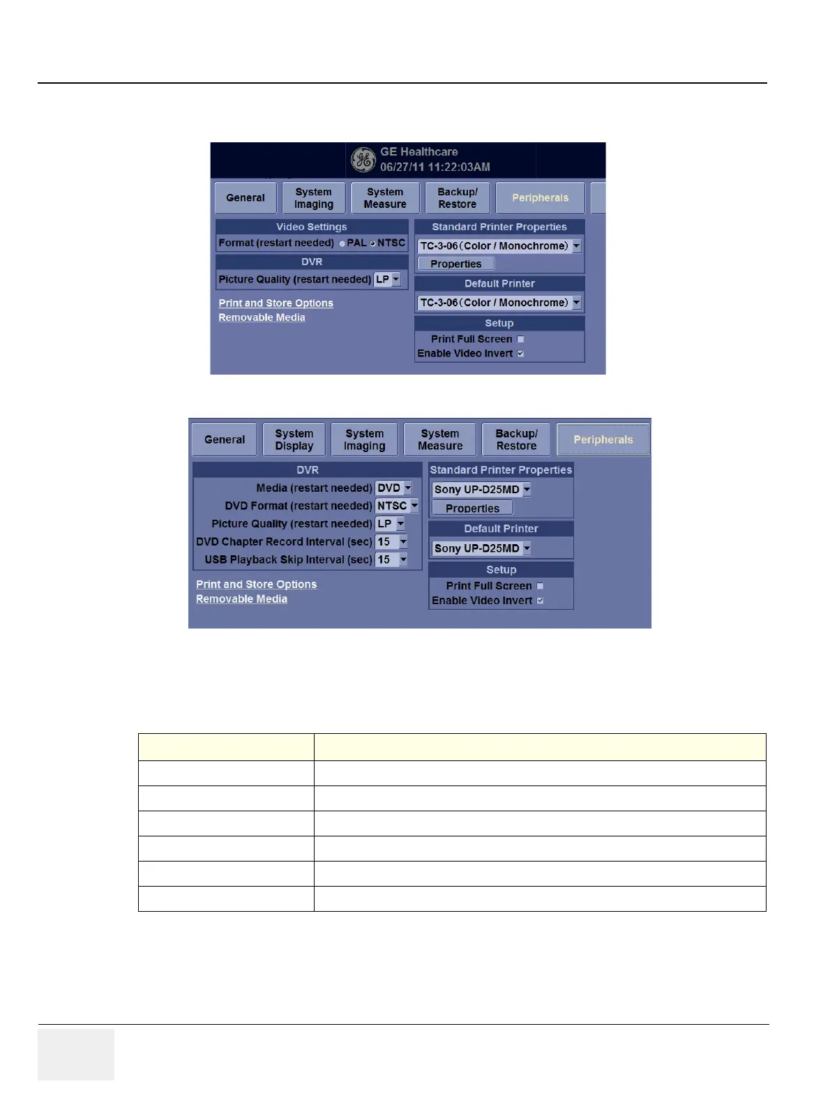 Table 8-18 Record settings from Peripherals screen (R1.x.x)