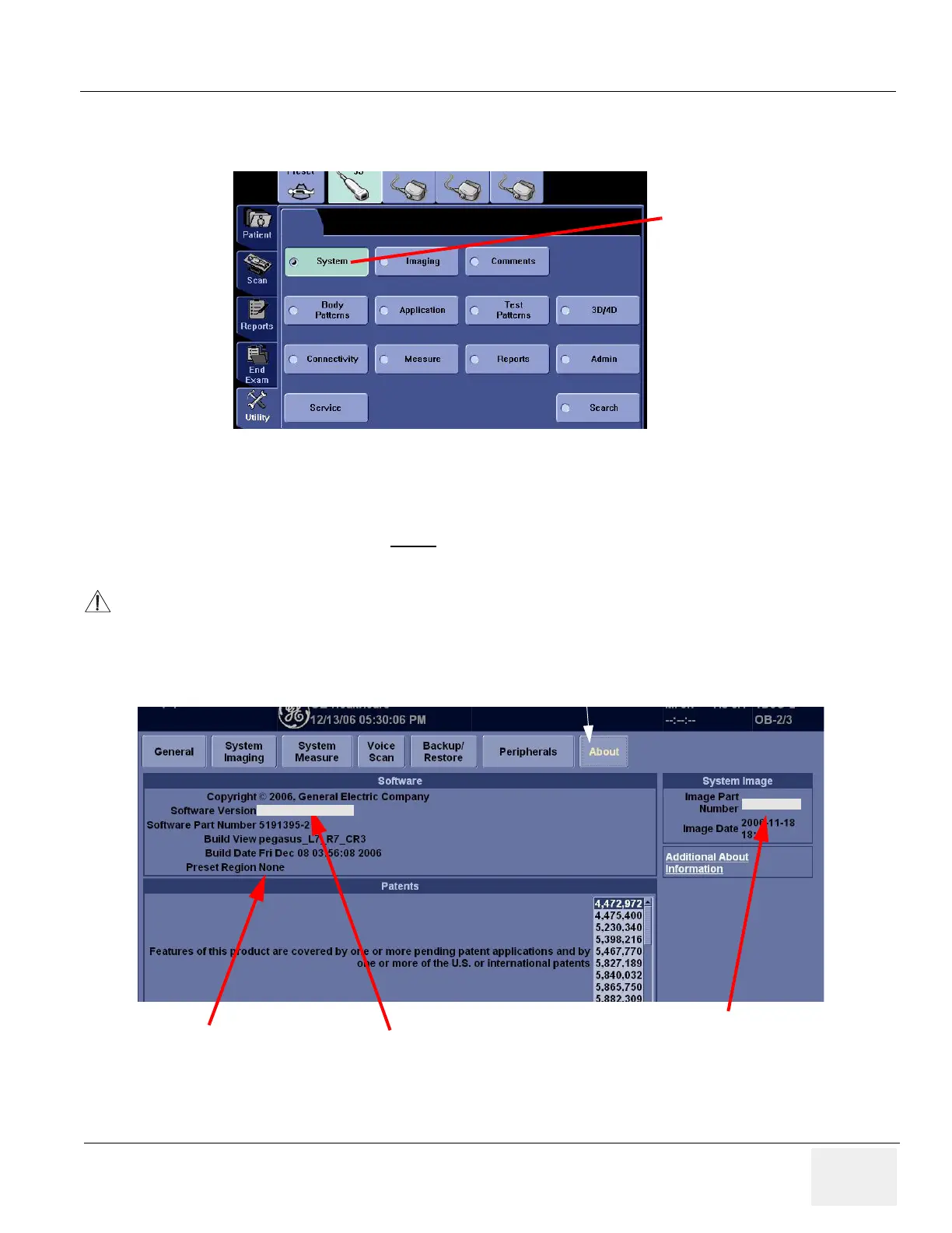 3.) Click on About tab. The software version will be shown on the monitor as shown. Confirm the