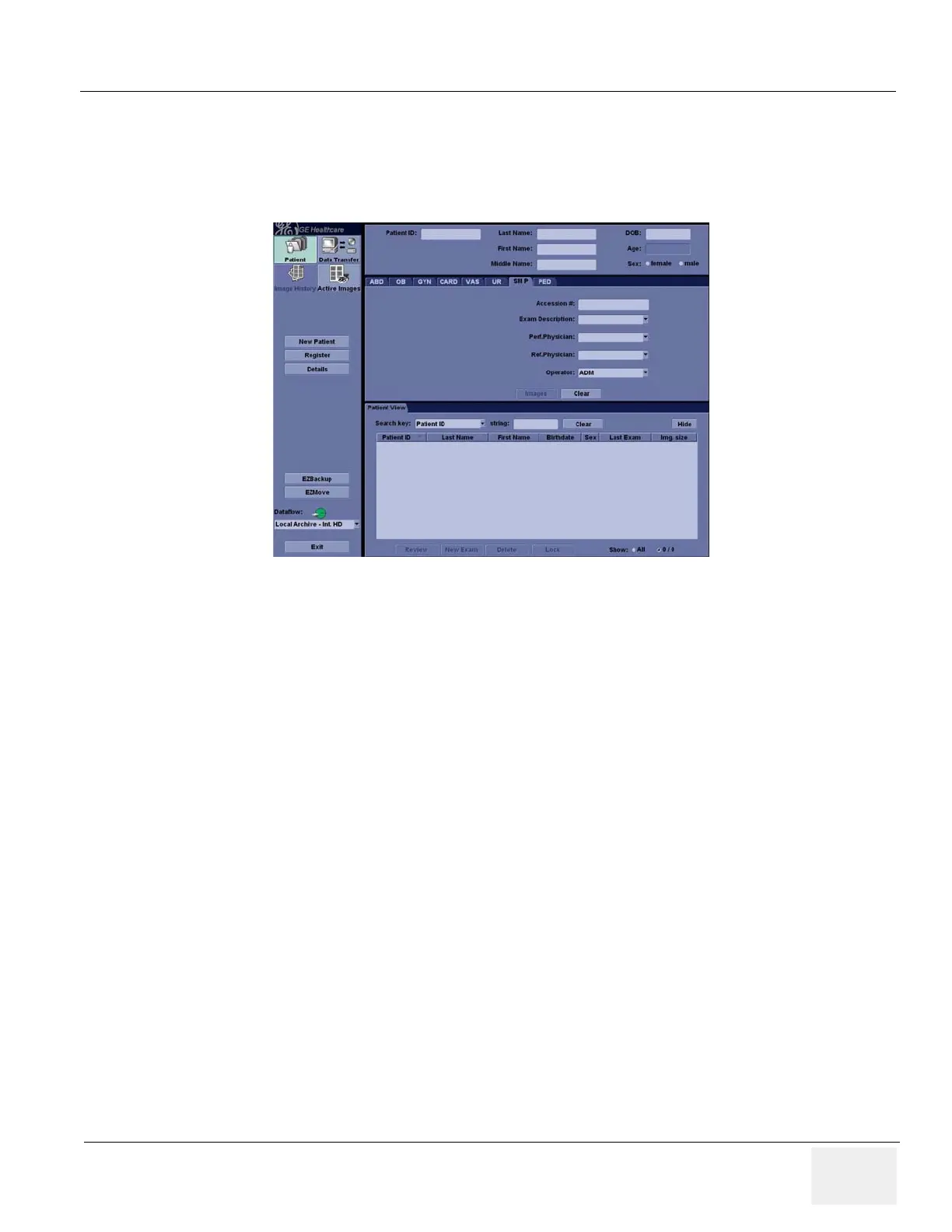 9.) Power ON the scanner, then press Patient key and verify that the following screen appears.