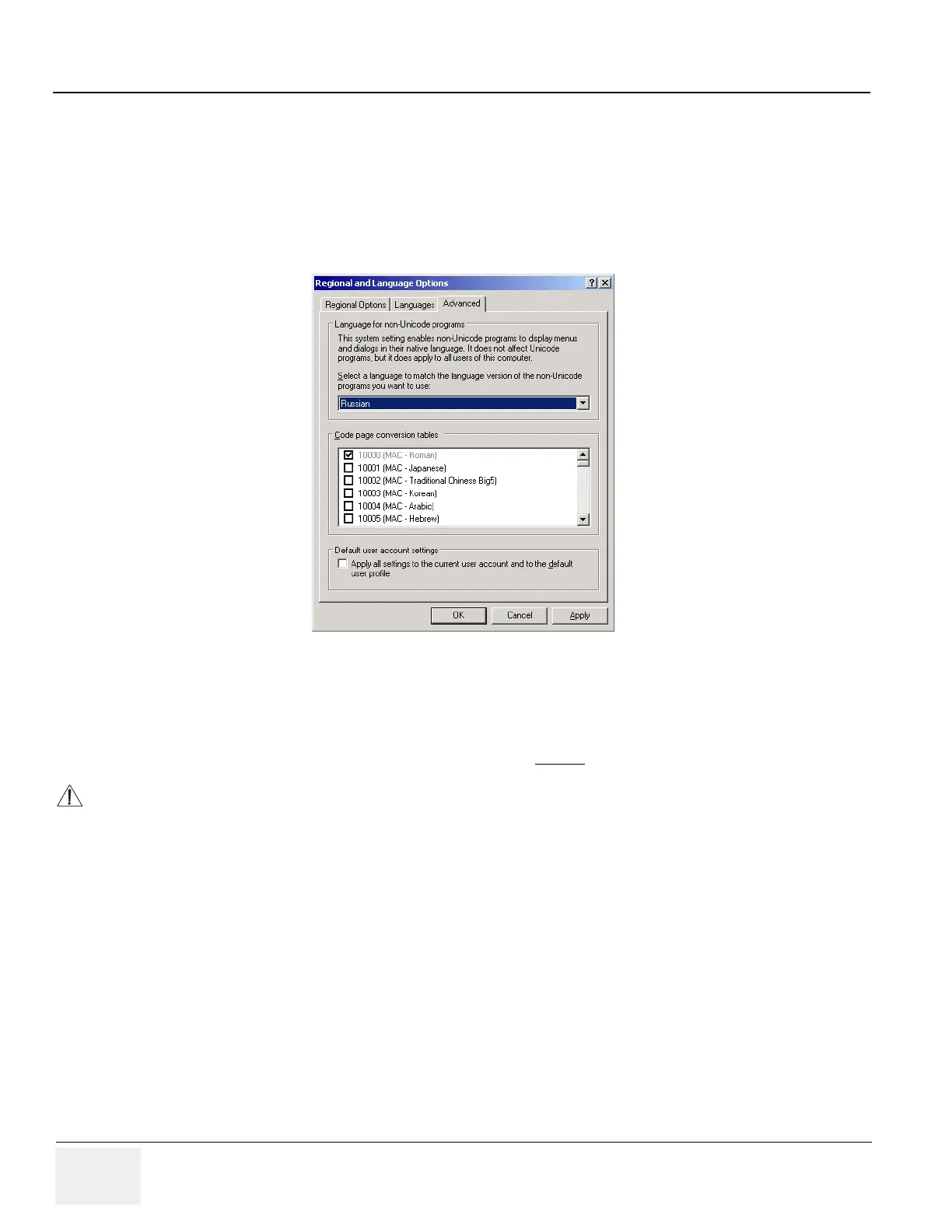 4.) Select the Advanced tab, then select Russian or Greek in the Language for non-Unicode