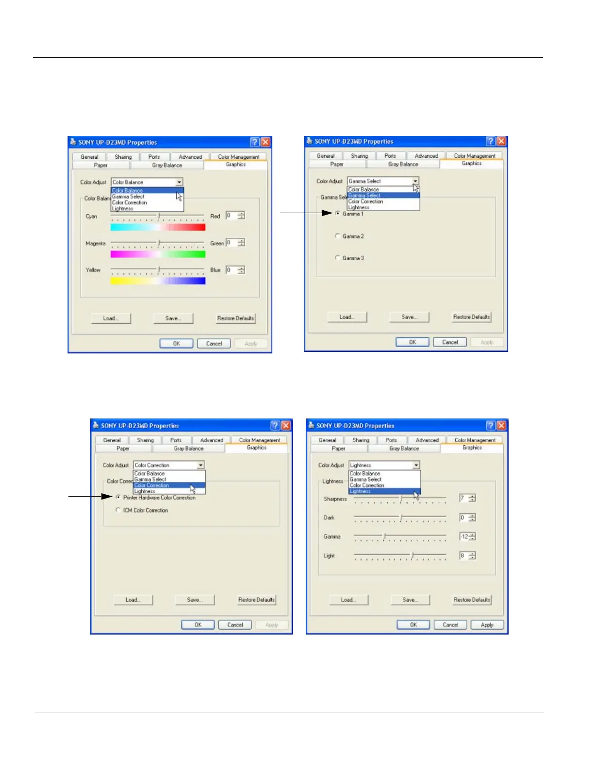 Figure 3-43 Graphics page (Color Balance + Gamma Select)