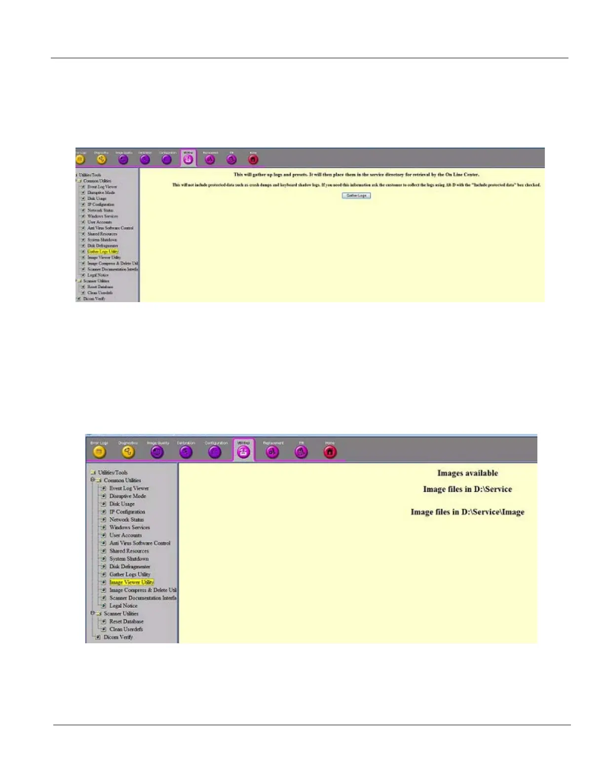 Click the Gather Logs button to prepare them for retrieval by the On Line Center. The logs are