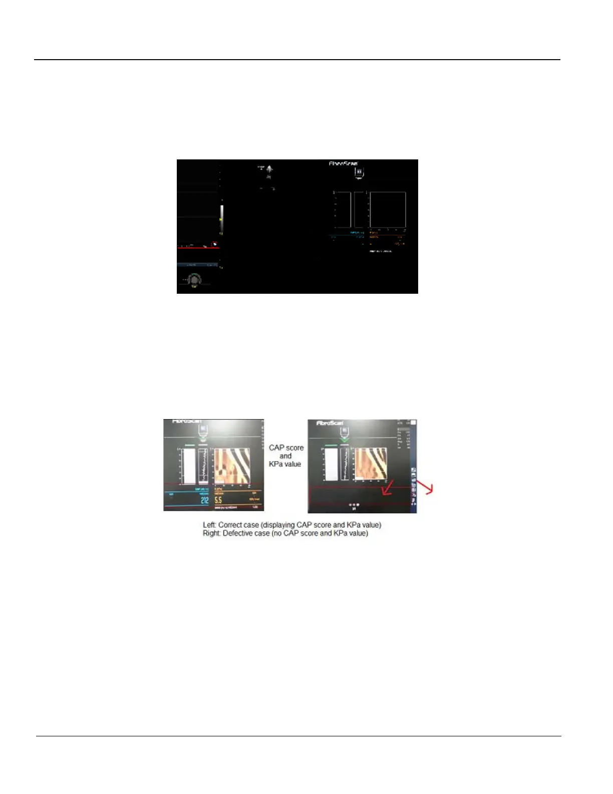 At the 1st time of FibroScan mode after system starts, CAP score and Fibrosis KPa values