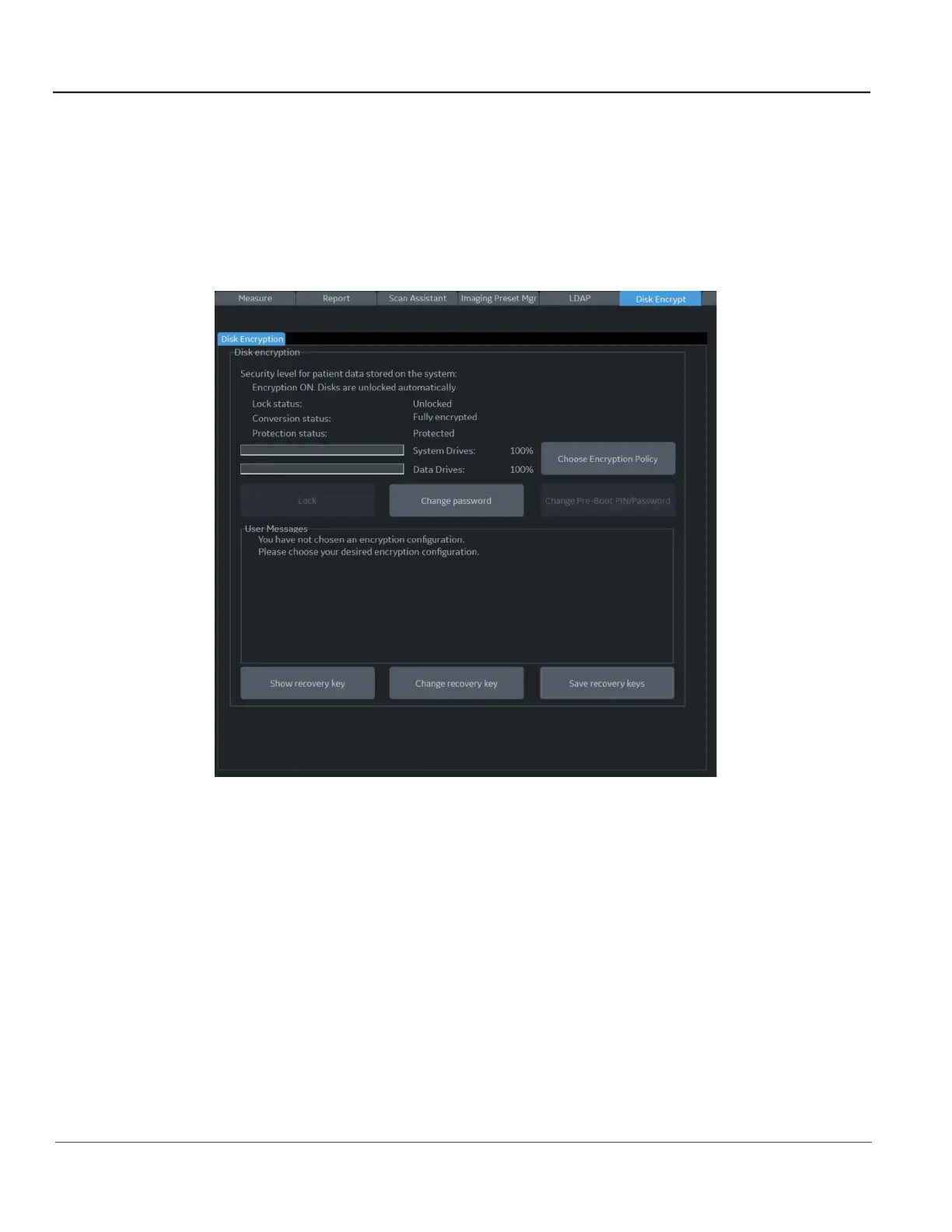 This is how the Disk Encryption tab appears once initialization and a policy has been selected and