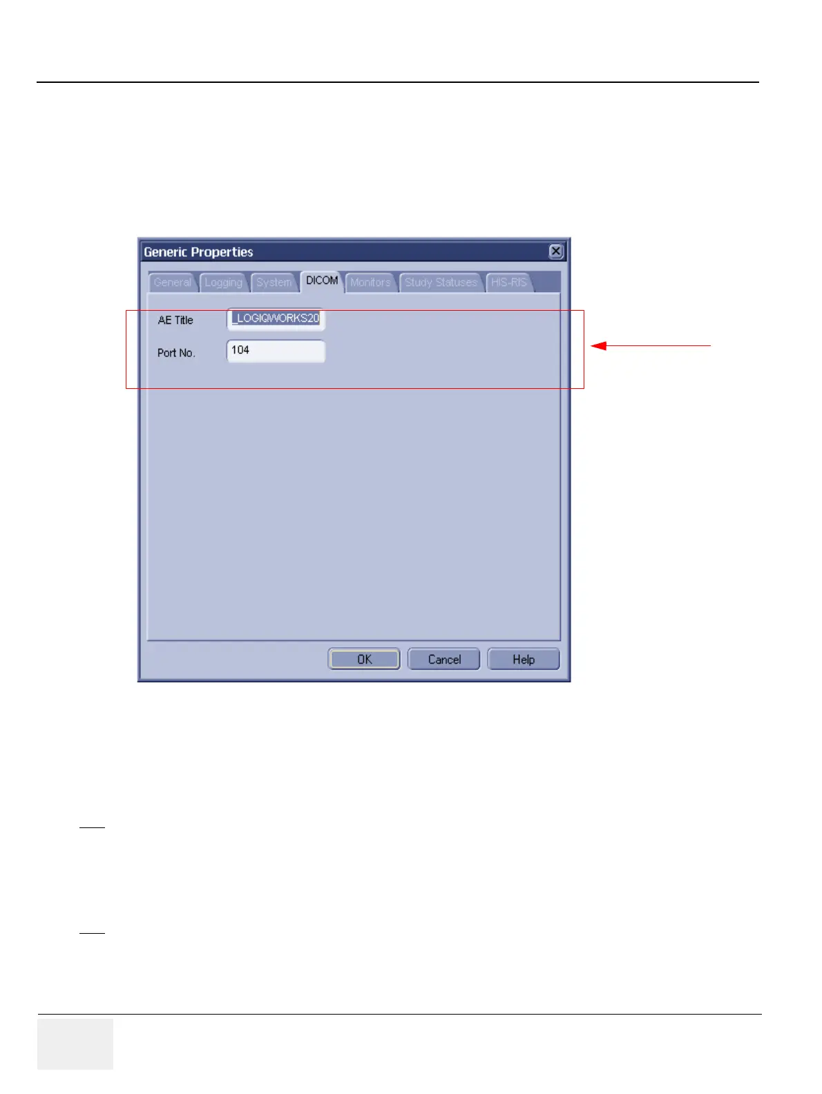• Port No.: Socket port number for the DICOM services provided by this system. The Port Number