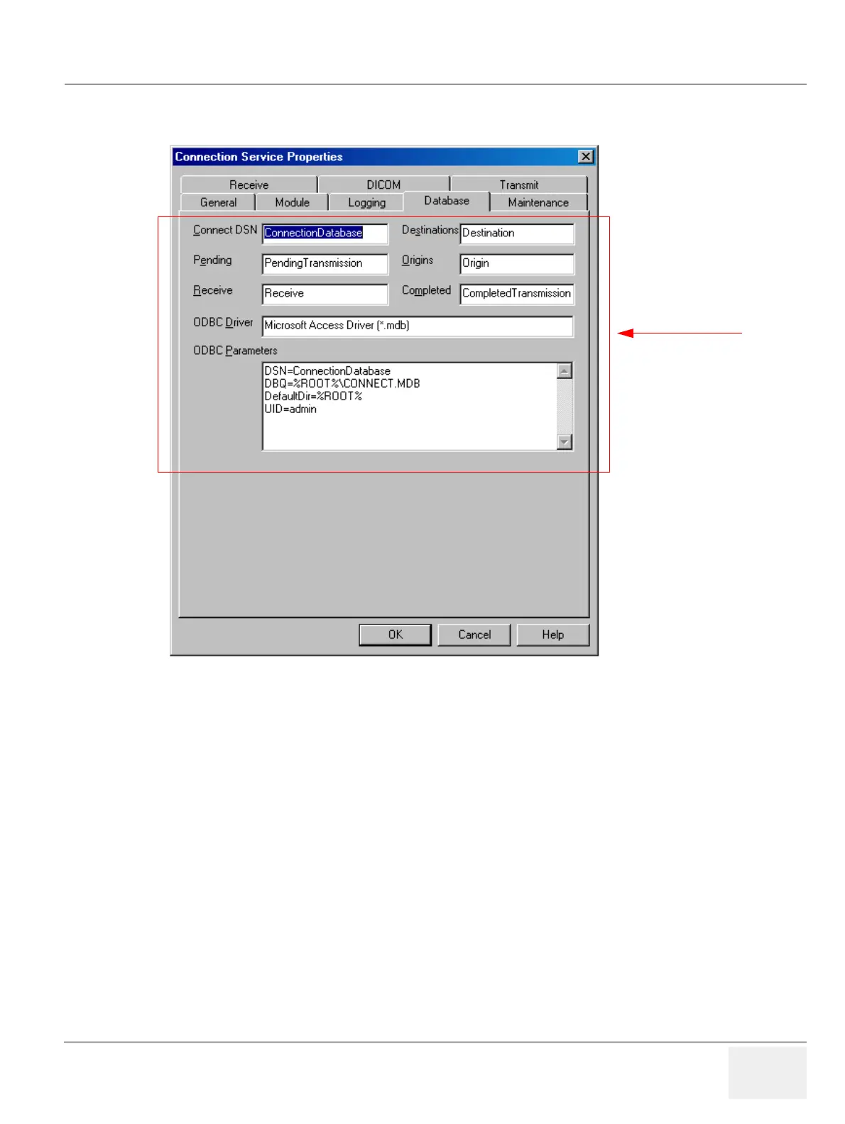 Figure 3-122 Connection Service Properties - Database (Default Settings)