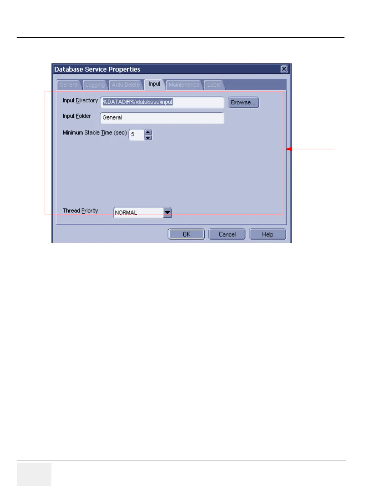 Figure 3-143 Database Service Properties - Input (Default settings)
