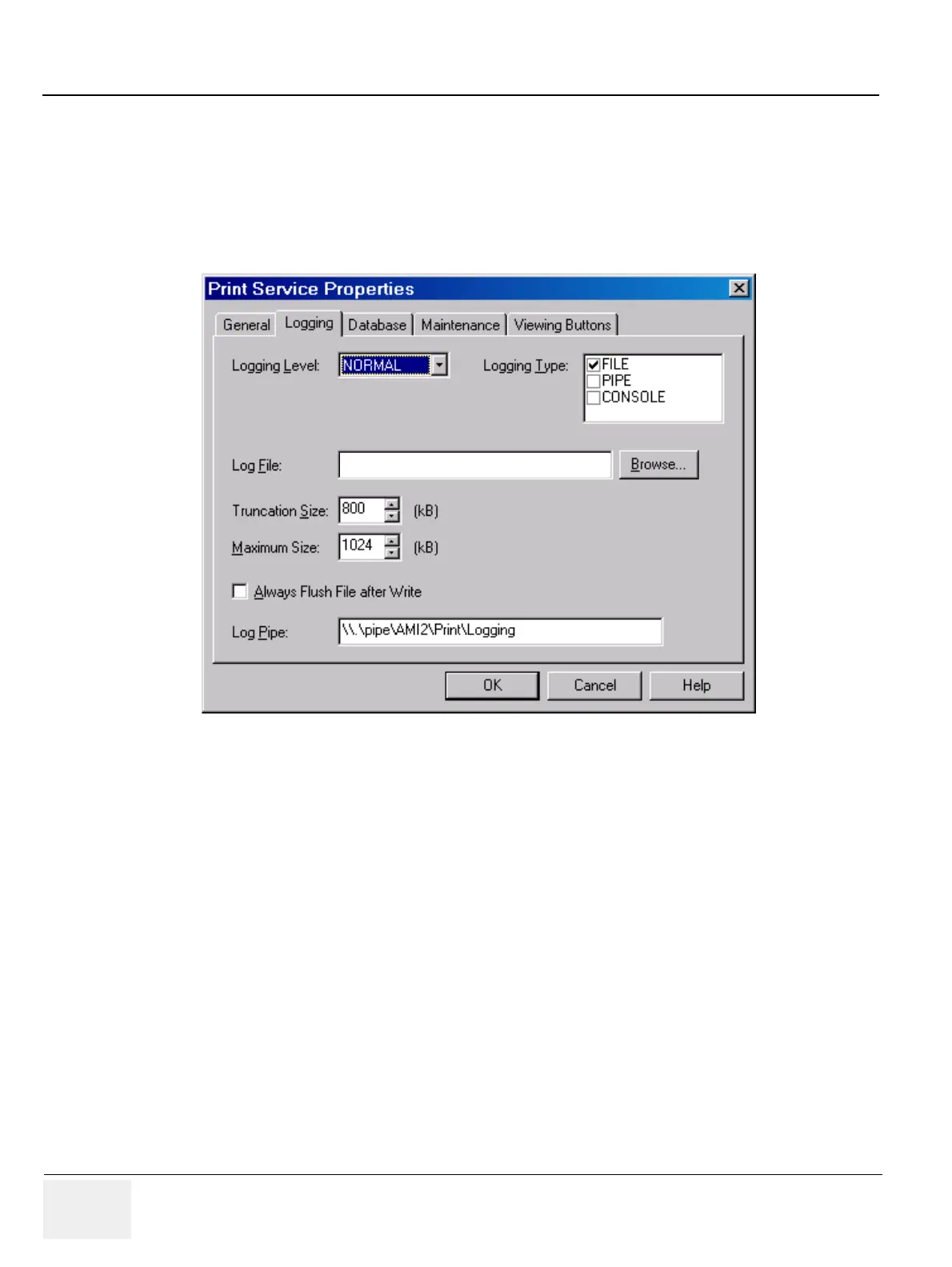 2.) Select the Logging tab from the Print Service Properties page.