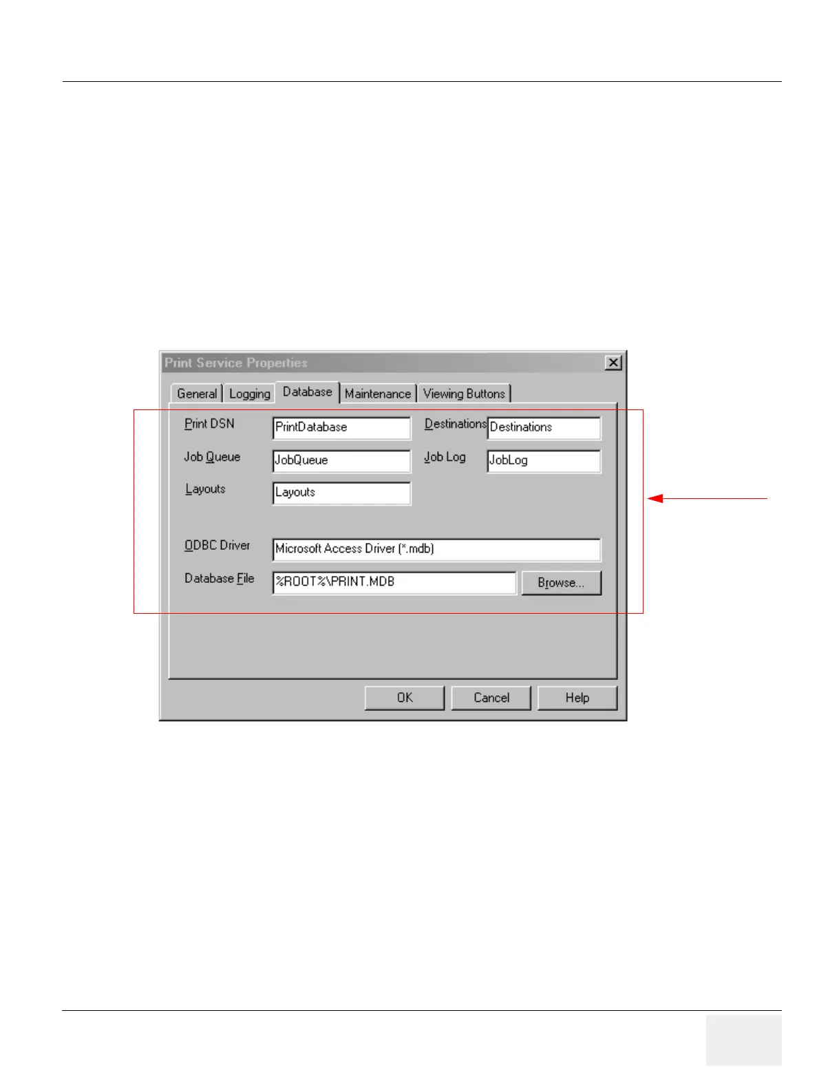 Figure 3-148 Print Service Properties - Database (Default settings)