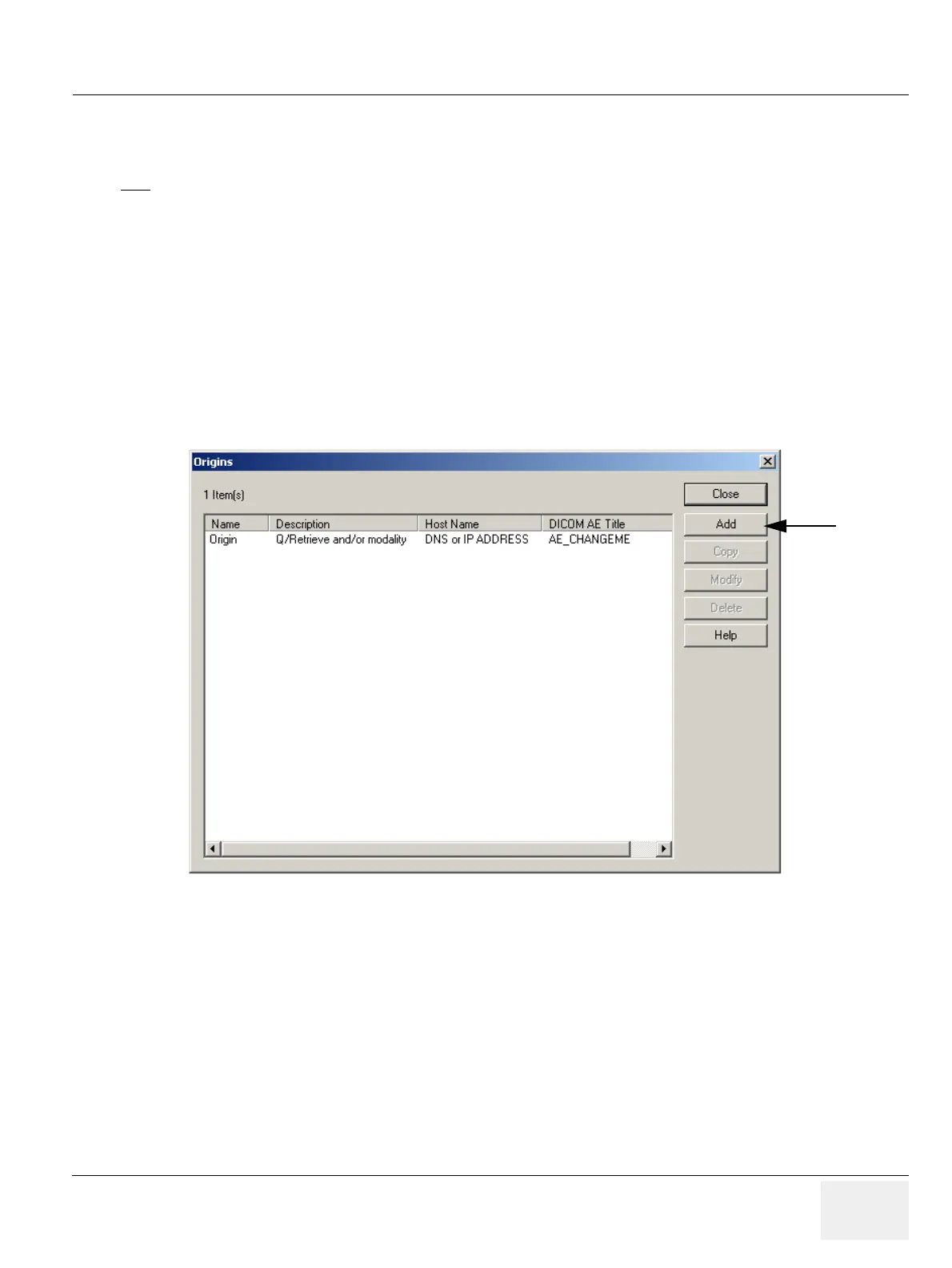 2.) Press the Add Button, the Origin Properties page is displayed.